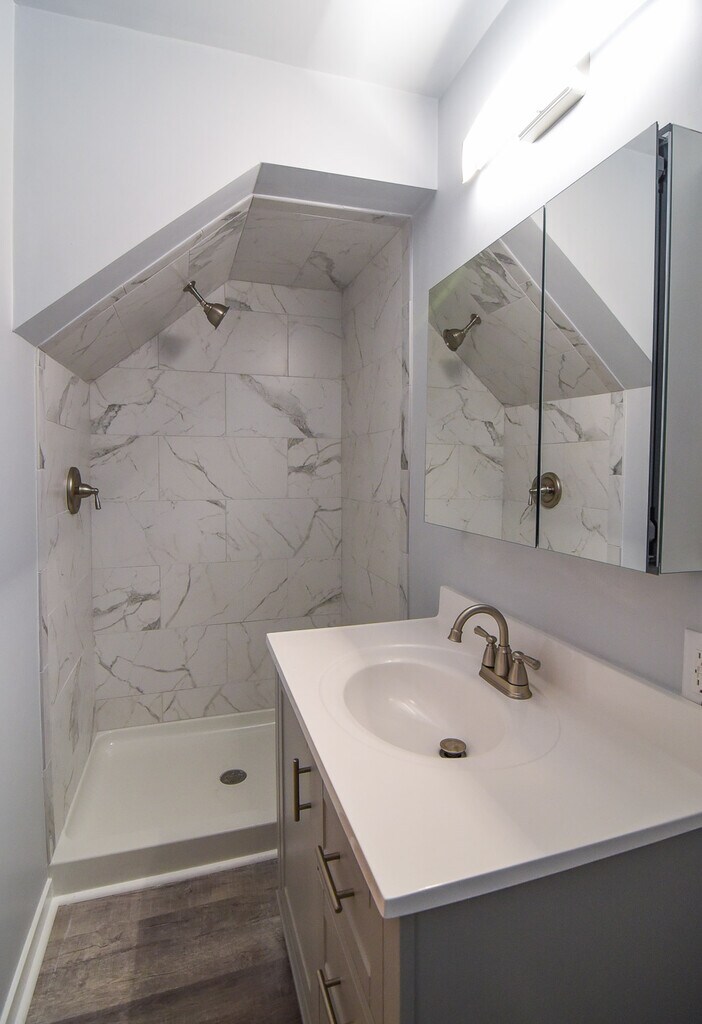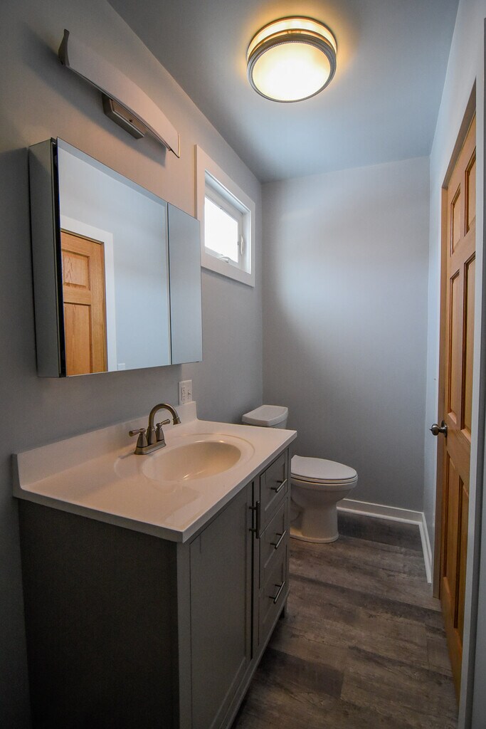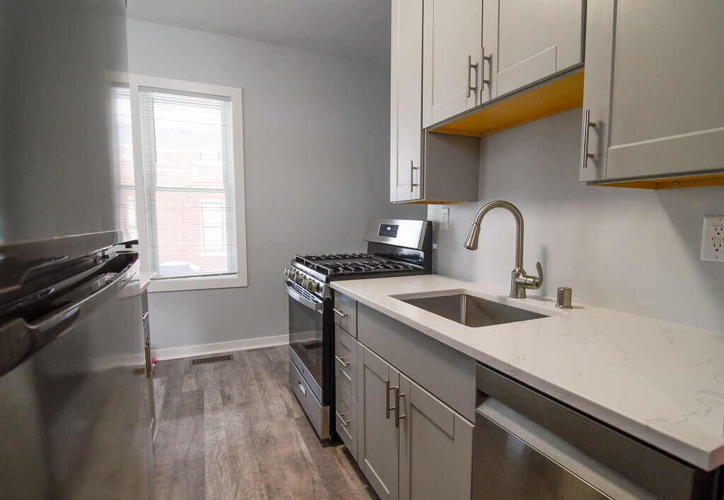 This recently renovated unit is absolutely amazing! Just a short walk to the park, lake, and downtown! Everything is brand new - New thermal replacement windows, high-efficiency furnace and hot water tank, New Central Air Conditioning, etc. Check out the photos of this brand-new kitchen featuring gray Shaker style cabinetry with soft-close drawers and quartz countertops, including a breakfast bar which opens to the living room! The kitchen also has New Stainless-Steel appliances, including a dishwasher! The living room is quite spacious and bright! The bath is also brand new with a large and beautiful shower (no tub), and a large vanity with a granite top. The primary bedroom will accommodate a king or queen size bed with bedside tables. The second bedroom is also a good size - full or queen bed will fit here, and the closet is large. This unit is part of a two-unit, side-by-side duplex. The adjacent unit is a one story one-bedroom apartment, and the building is set behind the brick two-story duplex with the addresses 5940 & 5942 5th Ave. It's a quiet and homey situation with a small, shared yard that is ideal for BBQs and/or a fire pit when the weather is appropriate. Plenty of opportunity to garden too - if that's of interest to you. This is a no-smoking unit. Cats permitted with a $300 pet fee, and additional $25/mo. rent per cat - limit two. Coin laundry available.