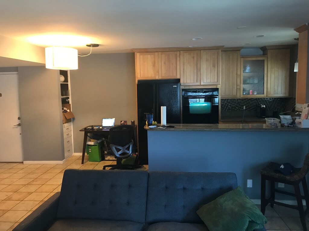 1 bedroom, 1 bathroom condo for rent in a beach front complex. Steps from the sand! Open layout and 740 sq. ft., feels very spacious. Large living room and open kitchen/dining room. Dark hardwood floors and tile throughout. - Building is located right by the beach. Exit the unit and you are steps from the sand and the water. - Double-ovens in the kitchen for those who love to cook. Granite counter-tops along with a granite breakfast bar counter-top. - Large living room with plenty of space for entertaining (currently used as a living room and has enough space for a home-office setup). - Large private community BBQ area that opens directly to the beach! You are free to use this as long as you are renting the unit. - Bathroom recently remodeled, includes regular shower head and rainfall shower head with bathtub. - Bedroom features custom closet with built-in shelving and dresser. Plenty of space for 2 people. - Plenty of storage throughout the house in hallway. - Fridge included - Custom bar area custom-built in the dining area. - Community laundry room is downstairs and includes 2 washers and 2 dryers as well as a small storage unit for all your laundry items. Looking for a 1 year lease. Parking NOT included. Please e-mail with any questions.