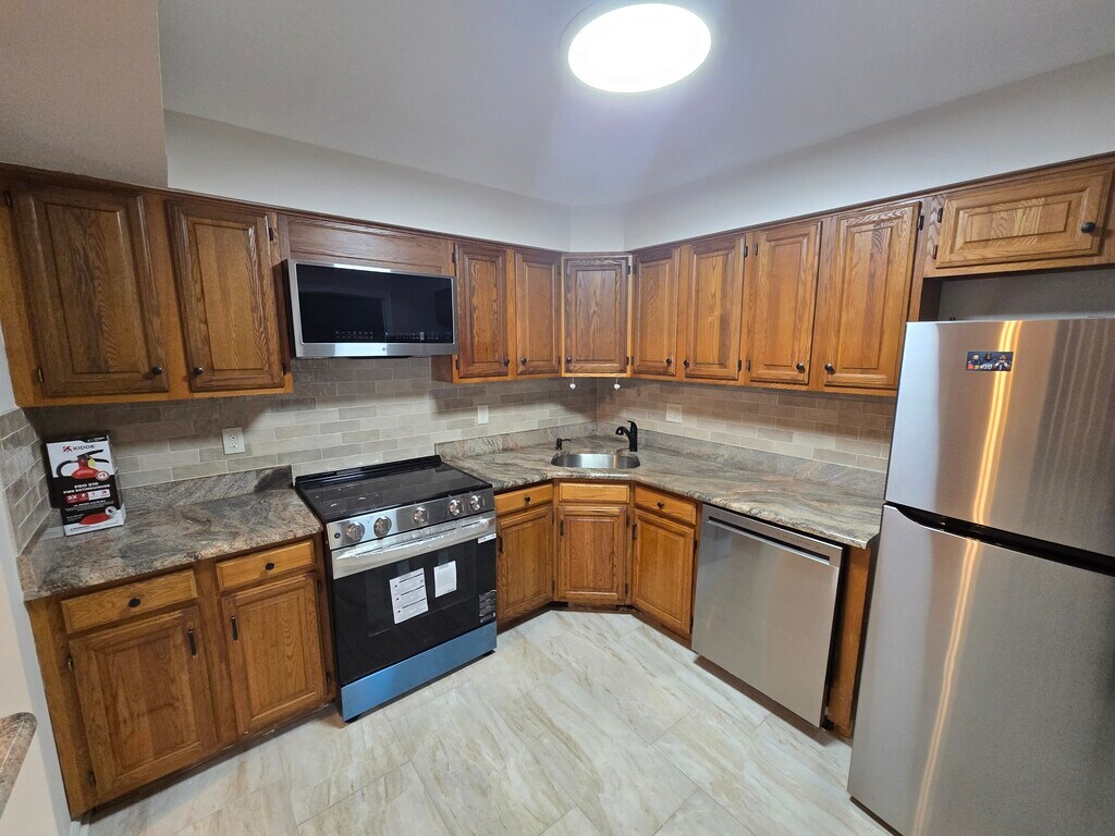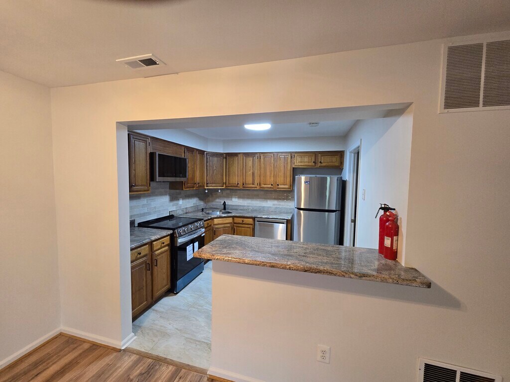 Stunning & Spacious 2 Bedroom/2 Bathroom condo apartment. Conveniently located in walking distance from restaurants and in close proximity to shopping. Entry with coat closet. Updated Kitchen has granite countertops, new porcelain tile flooring and backsplash, new range, new microwave, refrigerator, dish washer, garbage disposal. Laundry/Utility Room with full size washer and dryer. Both Bathrooms are newly and beautifully fully renovated. Open floorplan with living room continuing into the dining room with passthrough/counter/breakfast bar. Additional Sunroom/Den with walk-in closet with sliding door to patio. Owner pays water, sewer, property taxes and HOA fees. Tenant pays electric and gas. First month's rent ($2300) and a month & a half security deposit ($3450) total of $5750 needed at lease signing. Available now for May 1st move-in. No pets. Serious inquiries only please. My name is AL. Se habla espanol. Please call me to discuss and to schedule a tour today.