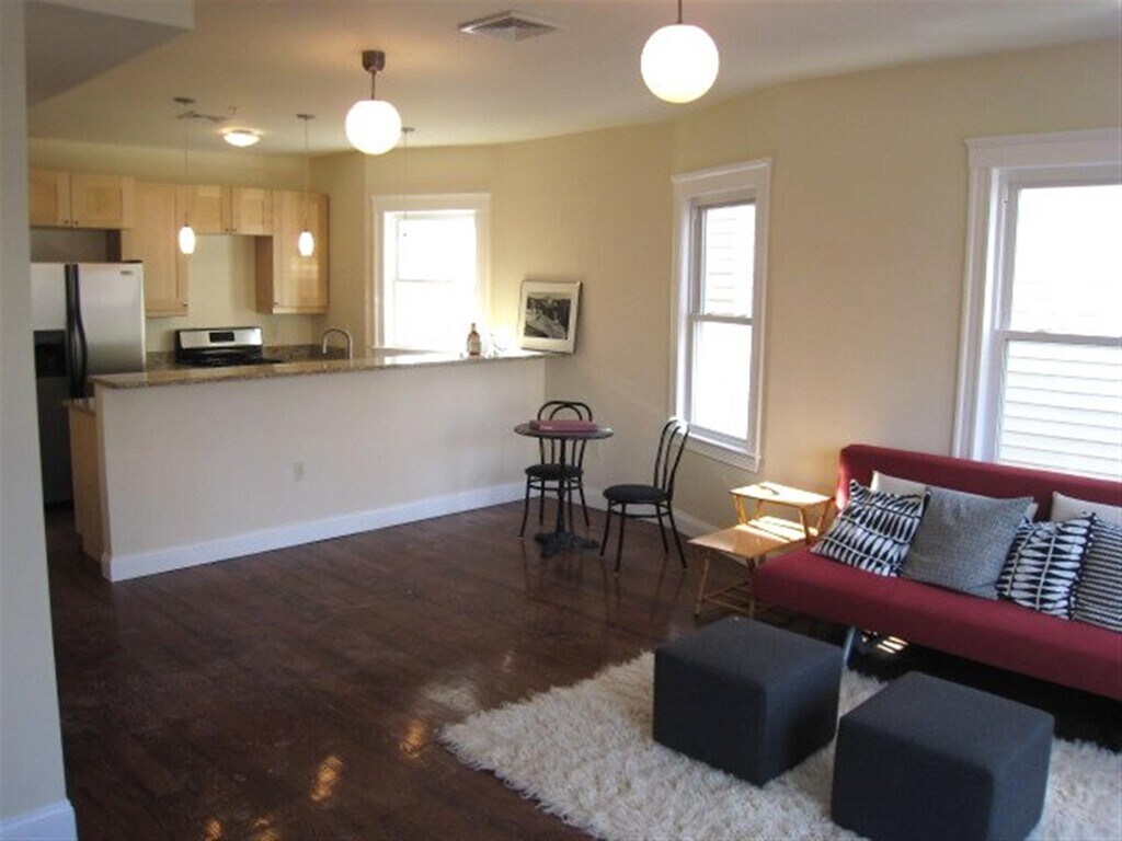 Beautiful Open Concept Granite Kitchen opens up into HUGE Living room.. Large Granite Bar. Hardwood floors throughout. High ceilings and huge rooms. 2 full bathrooms and Extra large master bed with private deck. aundry in unit. Quiet dead end street. Very nice gut renovation. Multi-Family on the second Floor. Approx 1000 Square Feet, In the Union Square Area of Somerville, 20 minutes to T (Reference #134994)