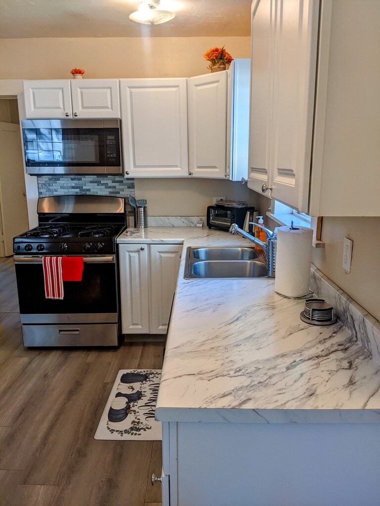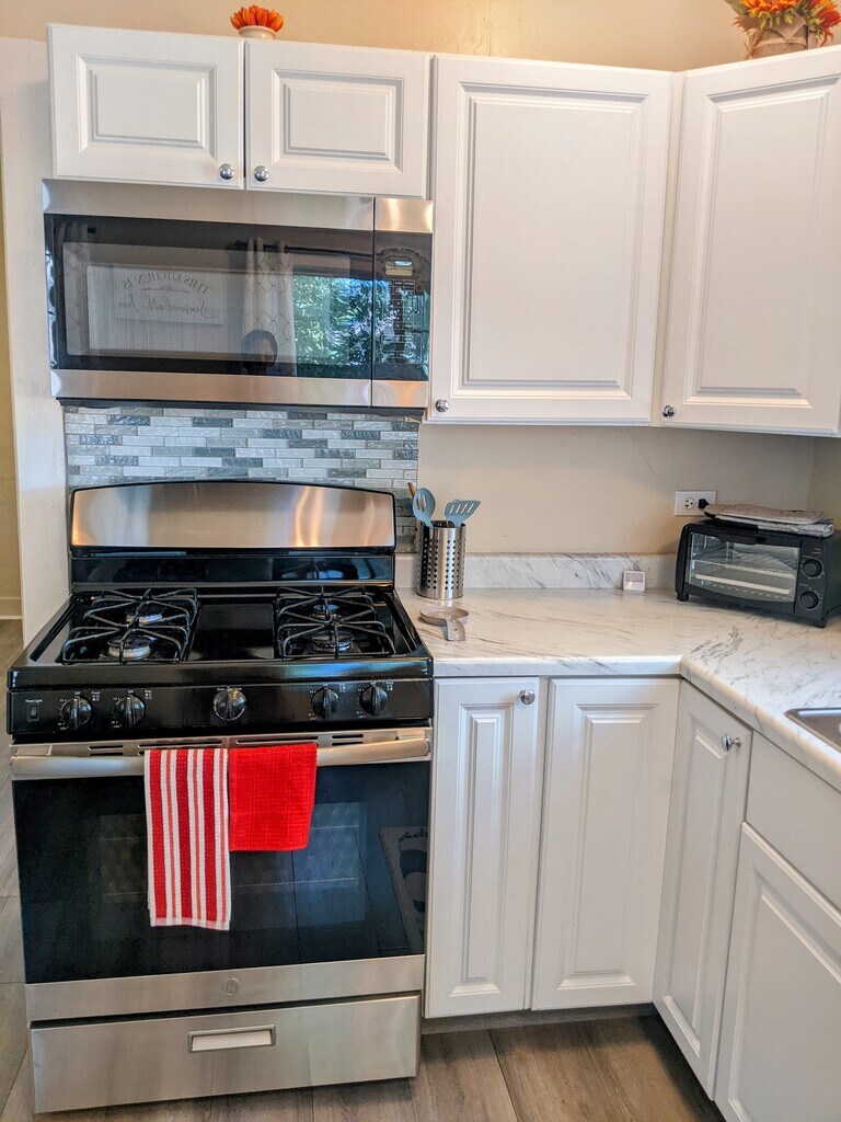 Tastefully designed, bright & airy 2 bedroom, 1 bath cottage, furnished home in a quiet, tree lined neighborhood . 2 queen beds . Baby bassinet & highchair Eat in kitchen with dining table, fridge, dishwasher, microwave, gas oven, toaster, kettle, cookware, cutlery & crockery. Washer dryer outlet. Walking distance to supermarket & restaurants. Walmart, Starbucks, Walgreens, Safeway and laundromat are a 5 min drive.