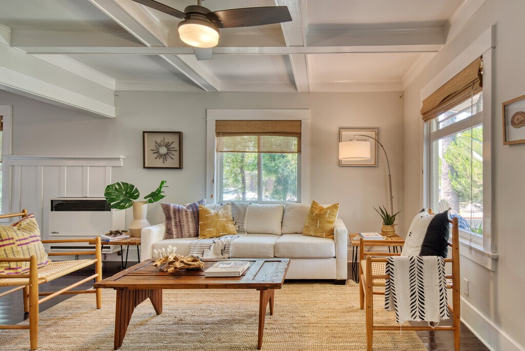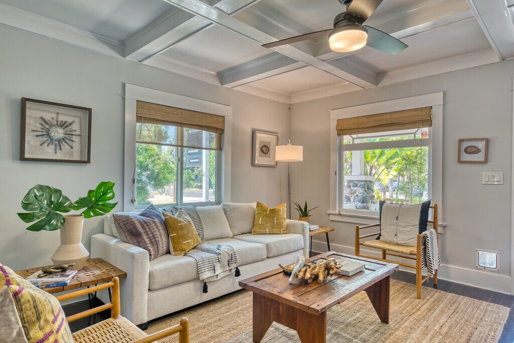 Timeless Craftsman beauty, rebuilt in 2012, preserving the original home's vintage character and charm. Graced with a warm free-flowing floor plan, this bungalow gem features rich oak floors, crown moldings, wainscoting, coffered ceilings & thoughtful modern updates. A sun-filled country-style kitchen w/ double-farmhouse sink flows naturally into both the dining room and a backyard patio that's perfect for al fresco dining. Rounding out the Main house are 2 comfortable en- suite bedrooms both w/ walk-in California closets & dual-pane windows. Off the patio, there's a detached office/den with its own separate entrance, with an additional space for storage, or a small art studio. There is also 1 driveway space. Great location on a pretty tree-lined street, just two blocks from the Abbot Kinney restaurants and shops, and moments away from the excitement of Rose Avenue & Venice Beach. Blending the best of old and new Venice, this is a property to treasure.