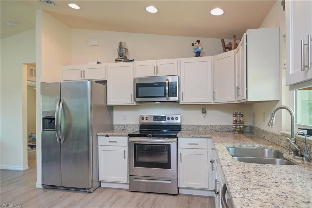 This light and bright 3 Bedroom, 2 Bathroom, 1 Car Garage concrete block home is just over 2 years old. It is situated on a spacious 1/4 acre lot on a quiet street in Labelle. The interior features include vinyl plank wood-look flooring throughout, white shaker soft close cabinets and drawers in the kitchen, stainless steel appliances, granite countertops, and a split bedroom floor plan with the owners suite featuring a walk-in closet and dual sinks. The home also has IMPACT windows. Located less than 5 miles to downtown Labelle with shops, restaurants, and the riverfront Barron Park.