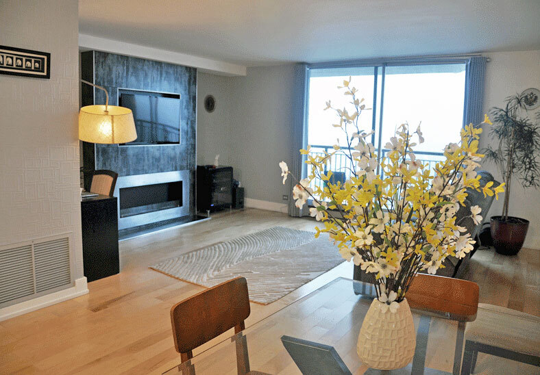 Extra large south facing 1 bedroom (1000sf) with breathtaking lake and skyline views! The spacious open-concept living and dining area features a custom-built electric fireplace while the kitchen is sleek and modern and is outfitted with high-end Bosch appliances. The updated bathroom and generous walk-in closet add to the home's large feel. Floor-to-ceiling windows flood the space with natural light, hardwood floors throughout and a large private balcony that runs the length of the unit offers stunning views of the city and water. Public transportation (Bus & Train ) only 3 minutes walk. 24 hour Doorman and maintenance staff. A variety of restaurants, grocery stores, Walgreens, only 5 minutes walk. Unit includes a separate mini-freezer. Unbeatable location-just steps to Mariano's, Whole Foods, public transit (bus & train), Lake Michigan beaches, the lakefront trail, and countless dining options. This full-amenity building offers a 24-hour doorman, on-site management, an outdoor pool with sun deck, party room, fitness center, and valet parking. Utilities included in the monthly rent except electric! Valet parking available.