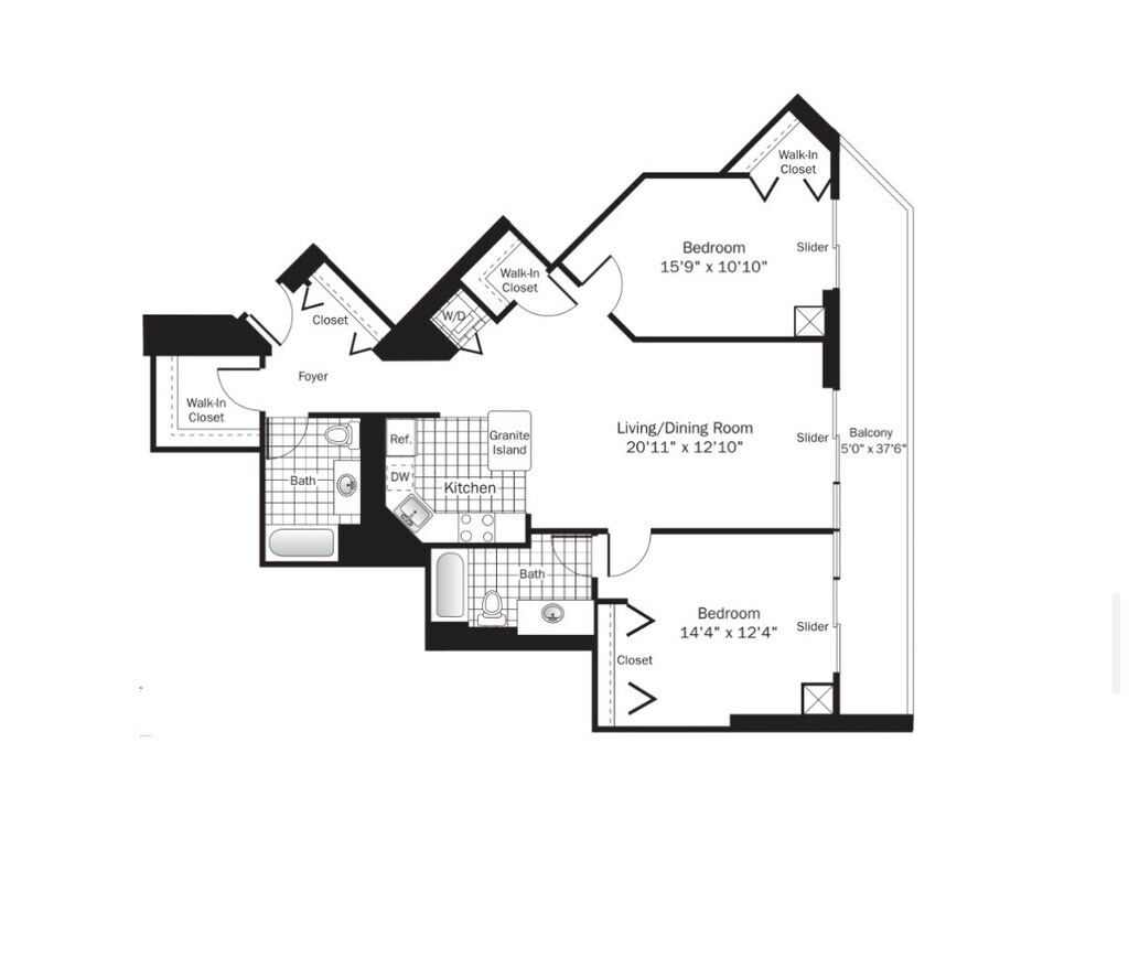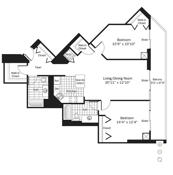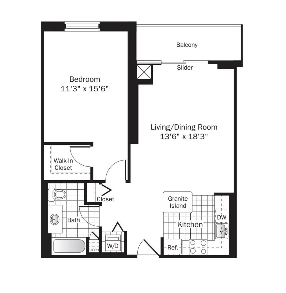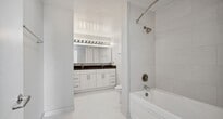 Studio Apartment with Balcony & City Views Bright and well-designed studio apartment featuring hardwood floors, floor-to-ceiling windows, and a private balcony with city skyline views. The open layout offers flexible living and sleeping space with excellent natural light throughout. The modern kitchen includes quartz countertops, stainless steel appliances, white cabinetry, and a functional island ideal for dining or additional prep space. Multiple closets, including a walk-in closet, provide ample storage, and an in-unit washer and dryer adds everyday convenience. The bathroom features a clean, contemporary design with a tub/shower combination, tiled surround, modern vanity, and chrome fixtures. Pet-friendly and thoughtfully finished, this residence offers comfort, functionality, and style in a full-amenity community. Community Amenities Over 50,000 sq. ft. of amenity space Outdoor pool with sundeck Private poolside cabanas Outdoor kitchen and dining areas Outdoor dog park Fully equipped fitness center Outdoor running track Indoor basketball court Party room and resident lounges Indoor parking garage 24-hour door staff Resident events and social programming Apartment Features Large private balconies Floor-to-ceiling windows Quartz countertops Stainless steel appliances In-unit washer and dryer Wood flooring throughout Spacious, open floor plans On-call maintenance Storage units available Bike room available