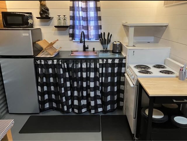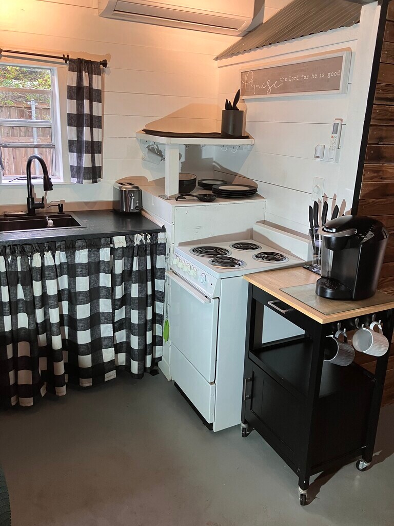 This quiet Studio has freshly painted flooring and has beautiful country charm. Has everything but a bed. Space enough for a king size. Walking distance to the Historical Blanco Courthouse that’s surrounded by all types of eats, park, stores & services. Includes off street parking & paid water, trash & sewer. Easy move in: NO Credit checks or Application fees Must have valid ID, proof of income & legal vehicle & insurance if drive.
