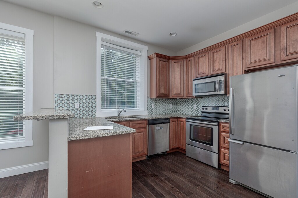 Great location for Wash U students! Includes: Central Heating & Cooling, Vinyl Windows, Hardwood Floors, 42-inch Custom Cabinets, Granite Counters, Stainless Appliances (Refrigerator, Dishwasher, Electric Stove, Microwave), Garbage Disposal, Off-Street Parking (1 parking spot), and Laundry in Basement.