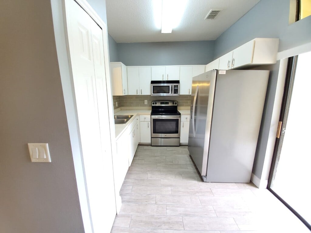6037 Scotchwood Gln Apt 4, Orlando, FL 32822 Beautiful 3 bedroom, 2 1/2 bath townhome style condo just waiting for new residents. Upon entering the unit you find yourself in a bright and spacious living room with a cute bay window to add to the charm of this home. The dining room is separated from the living room and has a pass through window from the kitchen making mealtime and entertaining simple. The kitchen is updated with energy efficient stainless-steel large fridge, range and microwave. There is space in the kitchen for a table and chairs for less formal meals and sliding doors out to your own private screened patio. New tile has been laid throughout the first floor. The 1/2 bath and storage space under the stairs completes the downstairs layout. Moving to the upstairs you will find a third room that can be used as office or den, 2 master suites with private en suite bathrooms and an inside laundry cabinet. The community has a well-equipped gym, club house, tennis courts and a beautiful swimming pool where you can relax and enjoy your hot summer days. To add to the appeal of making this your home, you are close to highways, shopping and dining. What I love about this home: Very spacious, clean, and neighborhood is beautiful. It is close to many businesses, shopping centers, about 10 min from the Orlando International Airport, and close to 408 Expressway. The community has very nice amenities. No pets. No smoking. 1-year lease. We will do background check during application process.