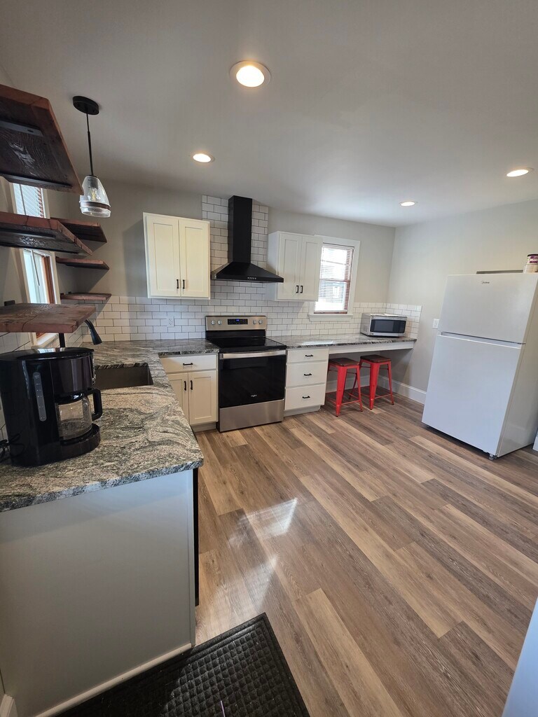 6038-B Old Hanover Rd. Spring Grove, PA 17362 Available now! Luxury townhome in a great country location! Walk in the front door of this townhome to a modest sized living room with a set of windows overlooking the side yard. You will love the country feel and mature trees! The living room flows right into the dining room where the chanderlier and wainscoating compliment the other updates in the home. The kitchen is also tastfully updated with open shevling and granite countertops. Upstairs, are two bedrooms with plenty of natural light (one a walkthrough) and a bathroom. On the third floor, are two bonus rooms which can be used as a home office or game room. This home also features conveinant off-street parking in the front and access to a pool in the back. Monthly Rent: $1,650.00 Move-in Fee: $1,750.00 The resident pays for electric, propane, and trash. Pool access included.
