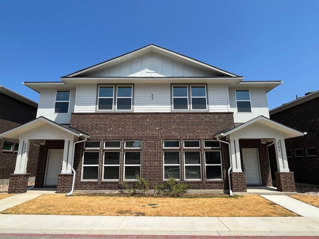 Unit#231 available for rent. 3 bed, 2.5 bath, 2 car garage unit in the heart of Leander downtown. Enjoy this gorgeous, high-end property, keyless entry, granite countertops, large closets and stainless steel appliances. The master suite is a true retreat, complete with a private en-suite bathroom and a walk-in closet. The two additional bedrooms are well-appointed and share a spacious bathroom. Plus, there is an additional half bathroom for added convenience in the main floor. 4 mins drive to HEB PLUS, 4 mins drive to Leander Metro Station, less than a mile! 9 mins to Costco and Whole Foods. Tons of restaurants within miles. 3 mins away from elementary school! Must See . No yard maintenance.