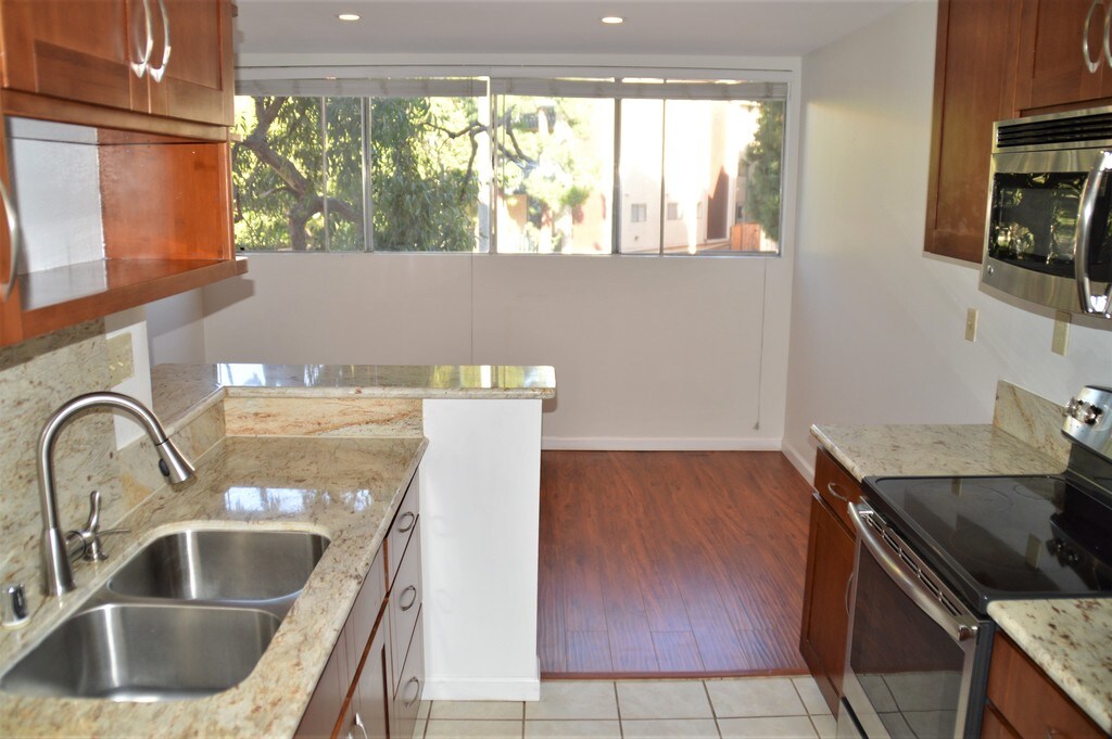 Enjoy quality living in this updated corner end unit in the popular 'Pines' complex with lush manicured grounds, inviting outdoor pool and sundeck, gym, controlled access with patrolled nightly security, and recreation room with on-site manager. Step inside the open and light-filled living space featuring wood laminate floors and recessed lighting. The contemporary galley kitchen with granite countertops and new dishwasher and microwave opens to both the dining area and spacious living room with a large wall of windows and private balcony affording breezy and peaceful treetop views. Enjoy two private and comfortable bedrooms with recessed lighting and abundant closet space with organizers. Laundry room close to unit and convenient gated subterranean SxS parking near the elevator. Centralized neighborhood location with parks and recreation, shopping mall, restaurants, grocery stores, major streets and freeways, LAX, Playa Vista, Downtown Culver City, and beaches nearby.