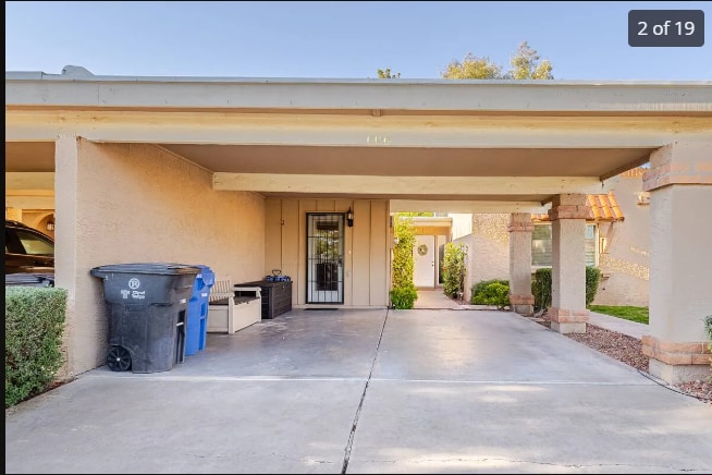 Modern looking town house (unfurnished), with renovated bathrooms, kitchen, and floors. The house is secluded in University Royal Garden and that gives you access to the pool, green area, trailer parking, community hall for rent. The layout of the house is quite open and enjoyable, offering lots of natural light and stainless steel appliances. The pool of the community is in front of the house along with access to a nice green area and a community room. The master bedroom has a lot of space with a nice view to the patio, and the second bedroom is a big room, too. It has a carport for two cars. The HOA (fee paid by owner) takes care of the plants and lawn in front of the house. The house has open spaces for families or adults that are looking for a quite neighborhood in a great location. You can walk to Kiwanis Park, restaurants and be at the airport in 15 minutes (and the zoo, botanical gardens, malls and lots of hiking). Close access to the I-10, US 60 and 101 freeways. The house is for rent without the furniture and we will ask for a credit score above 600, background check, and good references.
