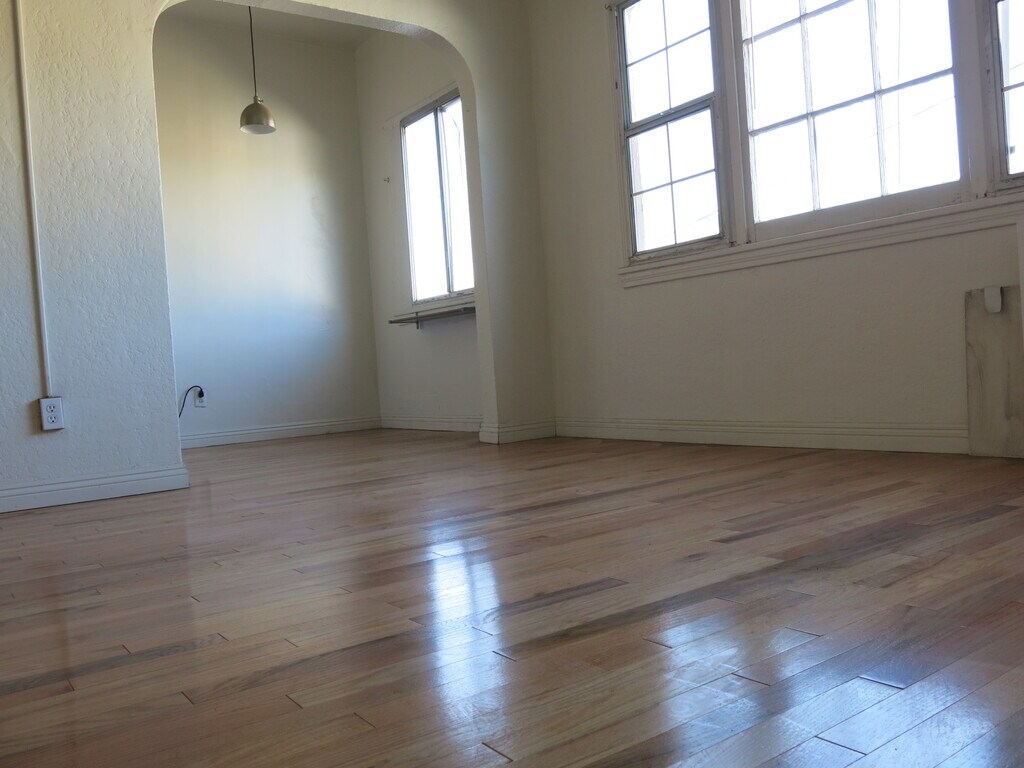 450 S.F. Top Floor Studio in great Silverlake Area. Location is going through gentrification with new Artists, Film(ing) and Creative People entering the area. Next to Maury's Bagel Shop, Hair Salon and Psychic Wines. Unit has hardwood floors, tub/shower in bathroom. Kitchen includes Stove + Fridge and dining nook. Bonus closet area. 1920's Architecture (Spanish). Onsite community laundry. Tenant Pays Elect. & Gas. STREET PARKING ONLY (Never a problem). EZ Freeway to Downtown/Hollywood. Add your personal touch and your home. Where in a hip part of Silverlake can you find $1500 Rent ! ! Sorry No Pets. Will consider LACDA Section 8 Vouchers for one occupant only.