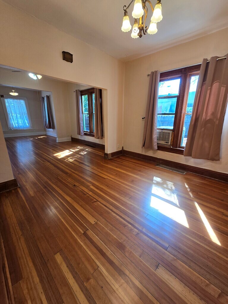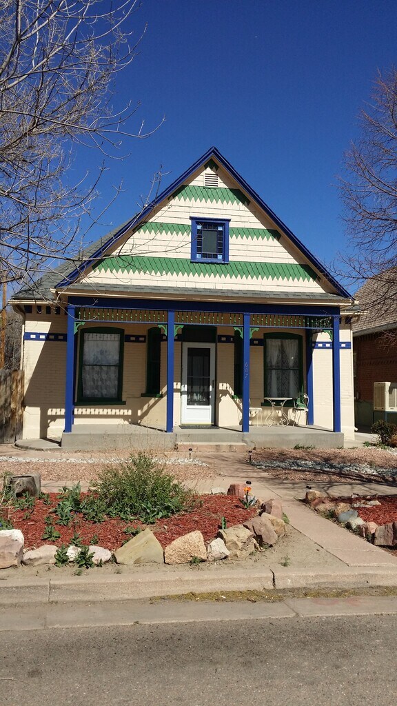 Lovely three bedroom, one bath home near downtown features original hardwood flooring and beautiful trim and built-in accents. The kitchen and bathroom have LVP flooring. This open living home has 3 adjoining rooms on the west and the 3 bedrooms on the east side of the house. Appliances include refrigerator, electric stove, and dishwasher. There are hook-ups for washing machine and electric dryer. The home is heated with a forced air furnace and cooled with a window mount swamp cooler. There is one off street parking space at the backyard off the alley. NOTE: The carport is not available for tenant use.