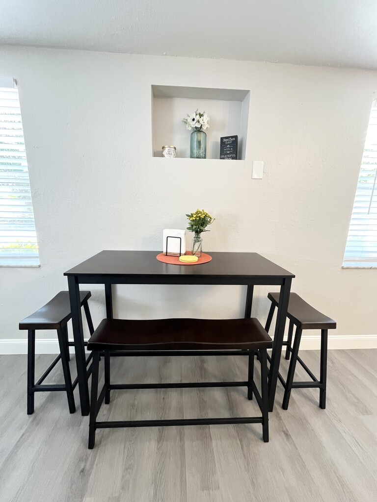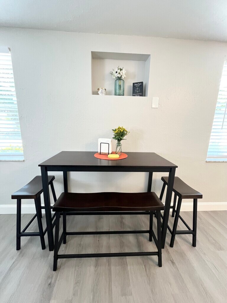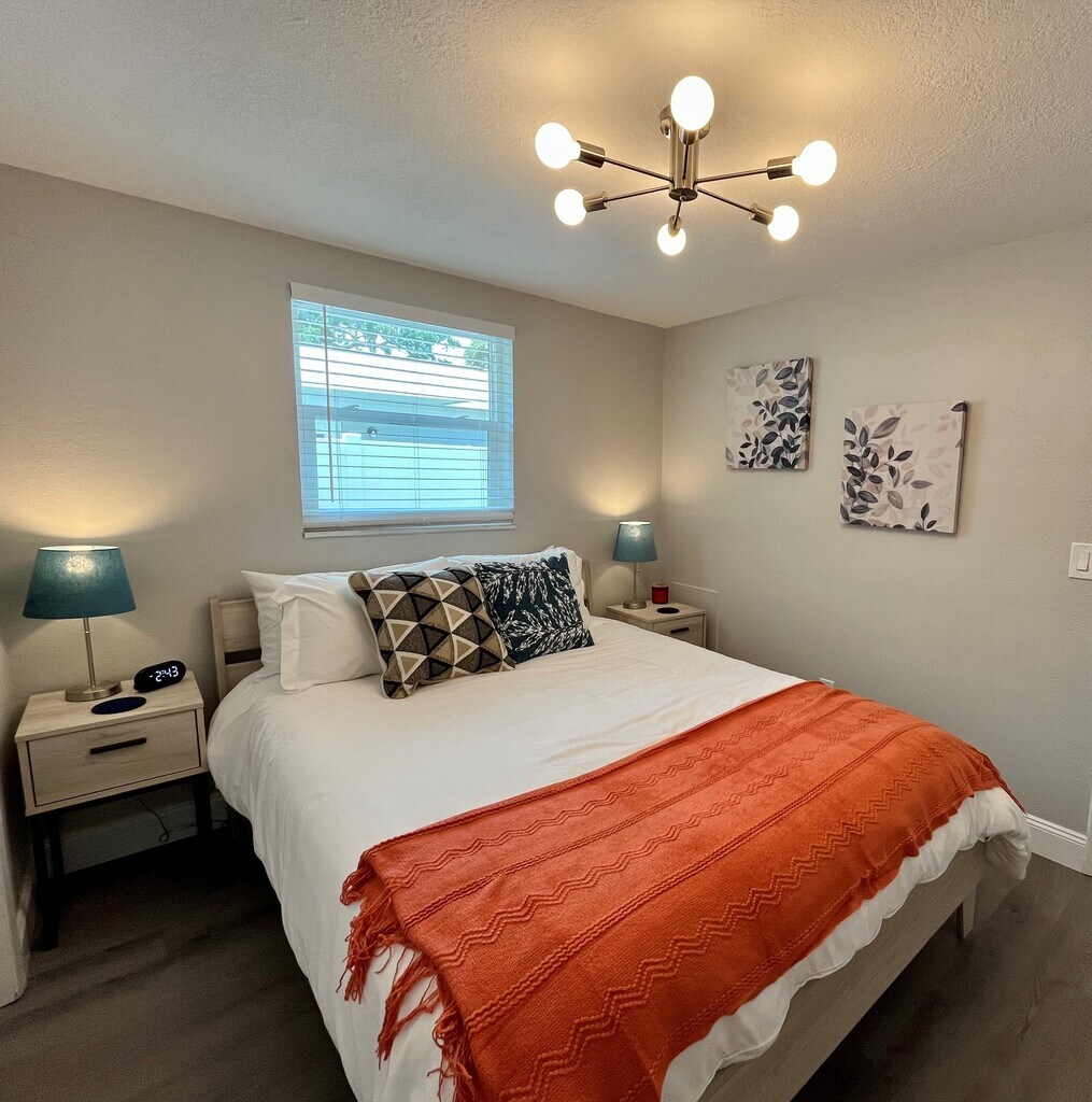 Furnished Downtown Dunedin unit within walking distance to Restaurants, Pinellas Trail and TD Park (Toronto Blue Jays spring training stadium)! Just a short drive to Clearwater Beach, Honeymoon or Caledesi Island and Downtown Clearwater. This well-appointed 2 bedroom/1 bath unit has stainless steel kitchen appliances, an updated bathroom, a washer/dryer, central a/c, high-speed internet, and 2 smart TVs. Fully furnished and stocked with linens, towels, and more! 2 bedrooms with 2 queen beds sleeps four. Just move in and enjoy all Dunedin has to offer. You will love living on this quiet tree-lined street just minutes from restaurants, entertainment, and shopping while being able to soak up all that nature has to offer by taking a stroll on the Pinellas Trail and enjoying the Gulf of Mexico sunsets on the marina. $2,100 - $3,200 depending upon length of stay and season. Minimum 3-month rental. Water sewer, trash, high-speed internet included. No smoking. No pets. 3- 6 month furnished lease options available. $50 application fee. Must complete background and credit check. Credit score 650+ $1,000 security deposit.