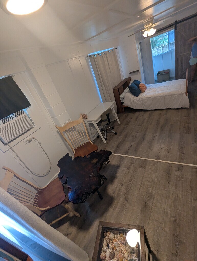 Available today. Steps from beach. Enclosed yard. Utilities included with window AC. Private kitchenette w/ toaster, hot plate, microwave, and fridge/freezer. Can be furnished or unfurnished. Will consider pet.