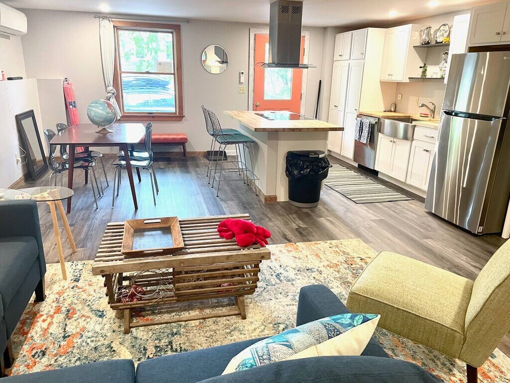 Enjoy privacy & convenience in a unique urban A Frame 3 blocks from Maine St., Brunswick with options for dining and shopping. The home has been remodeled inside with 2 patios for you to enjoy the outdoors. Furnished with just what you need for a comfortable stay. On a quiet street a block off Rt. 1, and very convenient to 295, Portland, and Coastal Maine. Great spot for active guests with kayaking, hiking and cycling options close. Laundry, full kitchen and more. This is a non-smoking property.