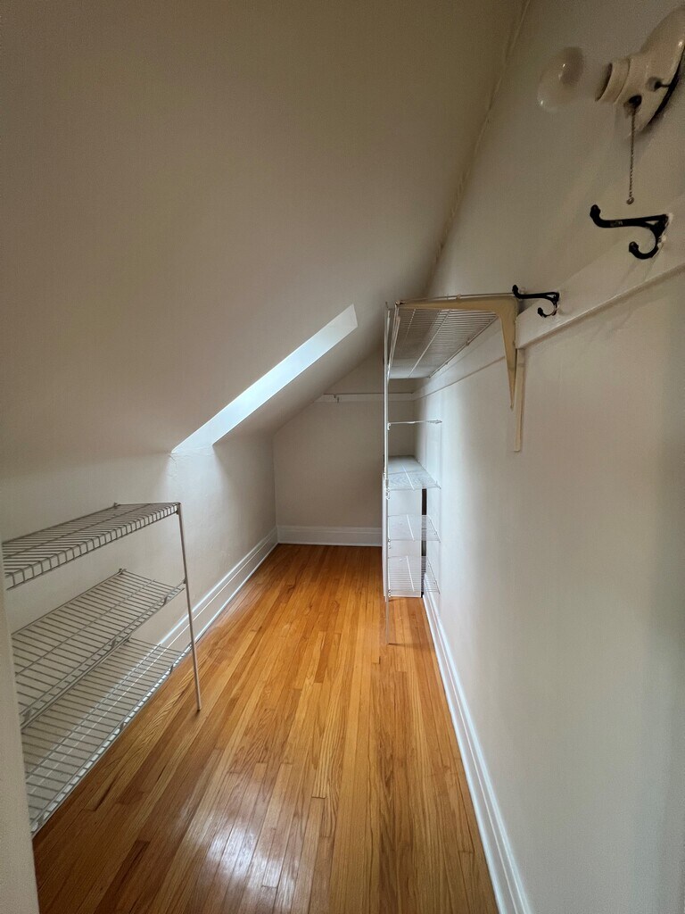 MUST SEE – Charming 1 Bed / 1 Bath Upper Apartment in Williamsville Village • Prime location in the heart of Williamsville Village • Off-street driveway parking included • Beautifully updated bathroom with tile shower and granite vanity • Gorgeous hardwood floors throughout • Spacious bedroom with ceiling fan and a large walk-in closet with skylight • Comfortable living room with two additional storage areas • Kitchen features Brand New Stainless Steel Appliances • Relax on your private balcony overlooking a tree-lined backyard • No pets or smoking allowed • Utilities and services included: water, snowplowing, and lawn care • Convenient Laundry with a New washer & dryer in basement • Extra basement storage space available