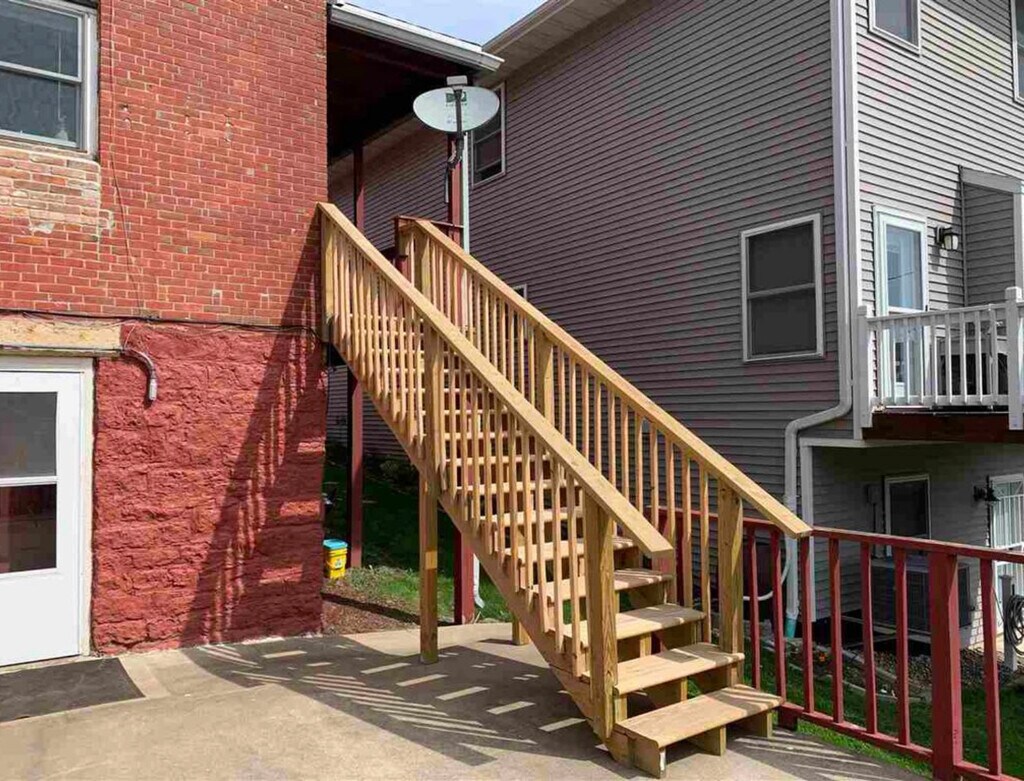 Spacious side-by-side duplex with classic Victorian construction and ornate craftsmanship throughout the home. The entrance of the home has historic charm and a large front porch. The main floor has a spacious living room, beautiful details in the dining room, updated kitchen appliances, a porch off the kitchen and dining room, and bathroom. Upstairs holds the spacious primary bedroom with walk in closet connected to second bedroom, plus a third bedroom down the hall, with a full bathroom. The unit comes with a wide single garage stall, large elevated concrete patio over garage and unfinished basement. Central air. Laundry hook ups in the basement. Utilities, lawn care and snow removal are the tenants responsibility. Great historic location, just a minute walk from the 4th Street Elevator.