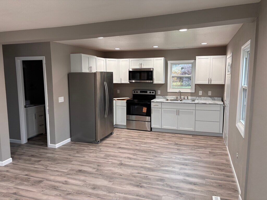 Totally renovated 3 bedroom home with Master-suite with full bath and walk-in closet; Two bedrooms upstairs; Open concept kitchen - Living room; smaller one car garage; gas furnace with AC; basement with washer - dryer hookups; large yard; the road and sidewalks were just redone; great neighborhood; close to elementary school; less than a mile to Interstate 39; close to the NTC; safe neighborhood with playground across the street and public pool one block away;