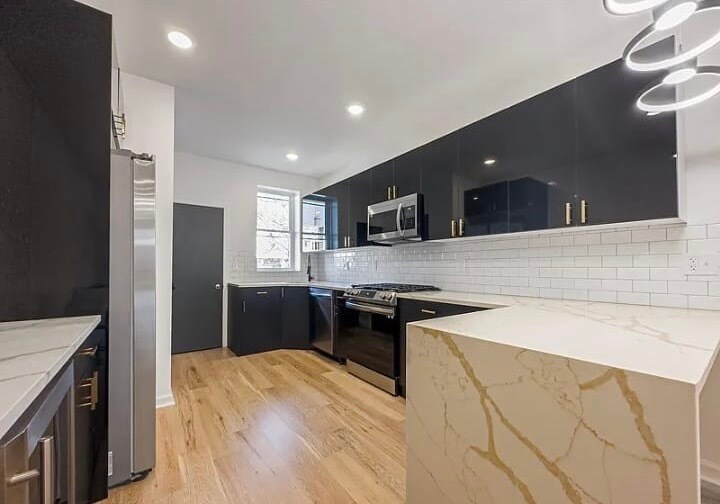 Located in a prime Philadelphia location in Cobbs Creek, this newly renovated home offers a seamless blend of modern amenities and timeless elegance. As you step inside, the richness of the hardwood floor immediately captures your attention, setting a warm and inviting tone throughout the home. Boasting generous square feet that provides ample room for both relaxation and entertainment. The heart of this home is undoubtedly its custom kitchen, where creativity meets functionality. High-end stainless steel appliances are complemented by custom cabinetry. Adding a touch of modern convenience, a built-in Bluetooth audio speaker in the living room allows you to enjoy your favorite music or podcasts as you cook and entertain. The home has been fully updated to meet contemporary standards, including new electric, interior plumbing, and HVAC systems, ensuring peace of mind for the new homeowner. With 3½ bathrooms, this home caters to both family living and guest accommodations, providing privacy and comfort for everyone. Each bathroom mirrors the home's overall aesthetic, combining functionality with sleek design elements. Location is key, and this property does not disappoint. Situated minutes from both University City and Center City, residents will enjoy easy access to a variety of dining, shopping, and entertainment options, along with proximity to major educational institutions and employment centers. This home is not just a living space; it's a statement of lifestyle and convenience, perfect for those seeking a blend of modern luxury and accessibility in one of Philadelphia's most sought-after neighborhoods.