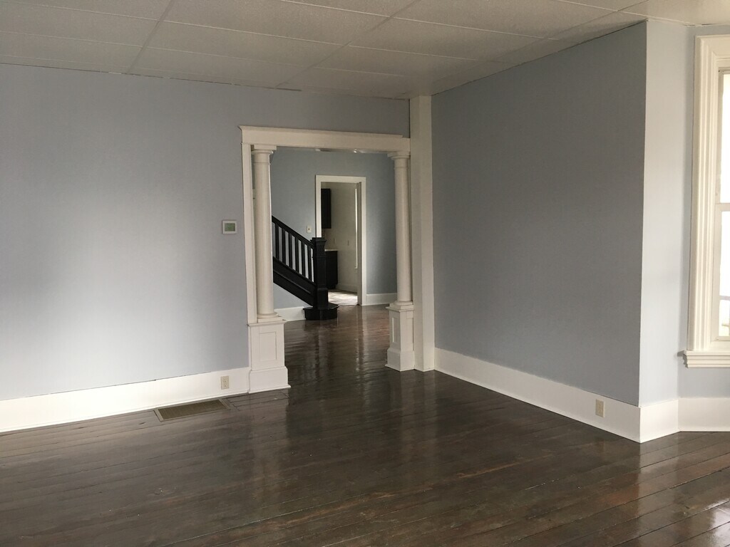 Dog and cat friendly half double home in watsontown. We have a 2 pet maximum. Parks and shopping within walking distance. Wrap around porch on this side of the house. Gas hot air heat, large yard and dirt floor garage space for one vehicle or storage. Lawnmower provided and mowing responsibilities are shared with tenants on other side.