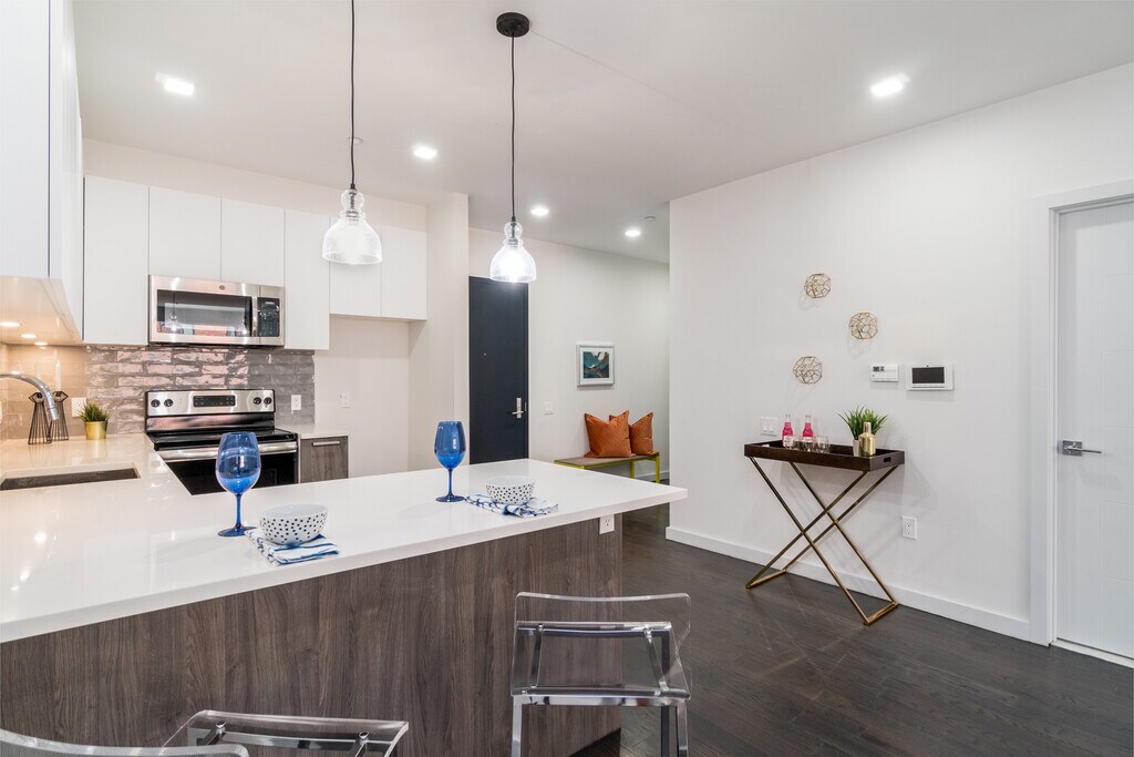 AVAILABLE November and December!! NO SECURITY DEPOSIT FOR QUALIFIED TENANTS!! PARKING INCLUDED! 1 month broker fee applies . A great opportunity to live at this amazing newly constructed (built in 2019) building offers luxury lifestyle at a great price! The unit features 1 bed 1.5 bath and has an open lay out concept, made in Italy Padani kitchen overlooking the dining room and living room area. More features: hardwood floors throughout, heated floors in bathroom, stainless steel appliances, tons of closets space, solar shades, video intercom, LED lighting and soundproof walls. Gym and parking for an attached garage is included. Laundry facilities on every floor + washer dryer in unit.. Building also offers NO SECURITY DEPOSIT option to qualified tenants! 1 month broker fee applies