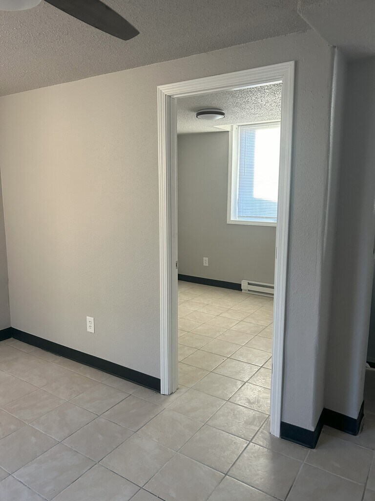 Affordable small townhouse space with private entrance, your own washer & dryer. While the bedrooms are small, this is such a great price to get your OWN washer & dryer! Upper available at this time! Tile in kitchen, bath. Carpet in LR and Bedrooms! In wall AC. Lowers: we love the entry area, with room for coat tree, shoes etc. Multiple brand new windows here too. We pay the water, trash, lawn & snow. One off street parking stall in the back alley. Close to downtown! In wall AC. Electric baseboard heat. Pet ok with deposit & pet rent.