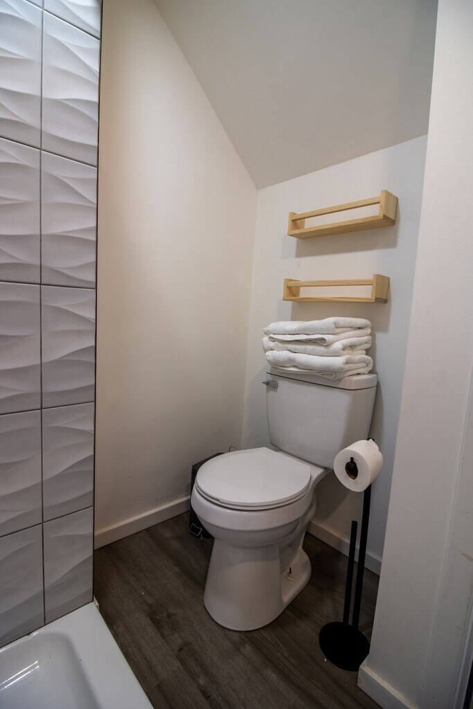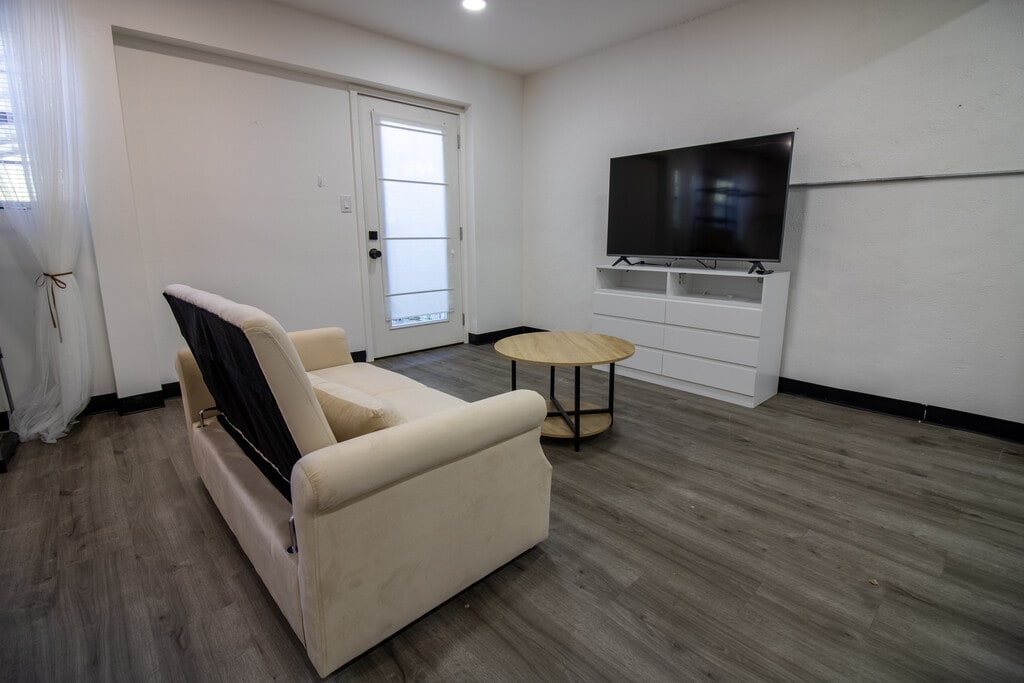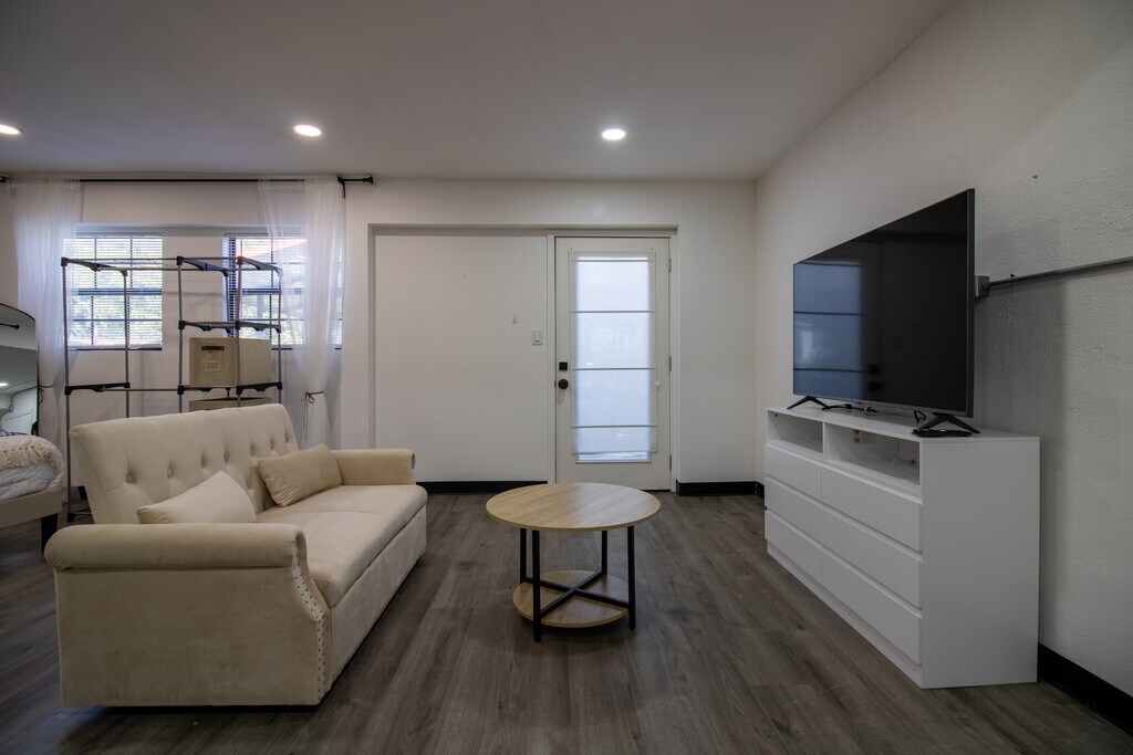 Beautifully updated garage apartment separate from main house with separate entrance. Apartment includes: -Keypad lock and deadbolt -Queen sized bed -Couch that converts into a full sized bed -55 inch LG Smart TV -Washer and dryer conveniently located next to apartment (Shared with main house) -Kitchenette with coffee maker, microwave, French door air fryer -Fridge/freezer -Dining Table -High speed internet/Wi-Fi -Utilities included -12 month, 6 month, 3 month, and month to month leases available -Pet friendly ($150 pet deposit)