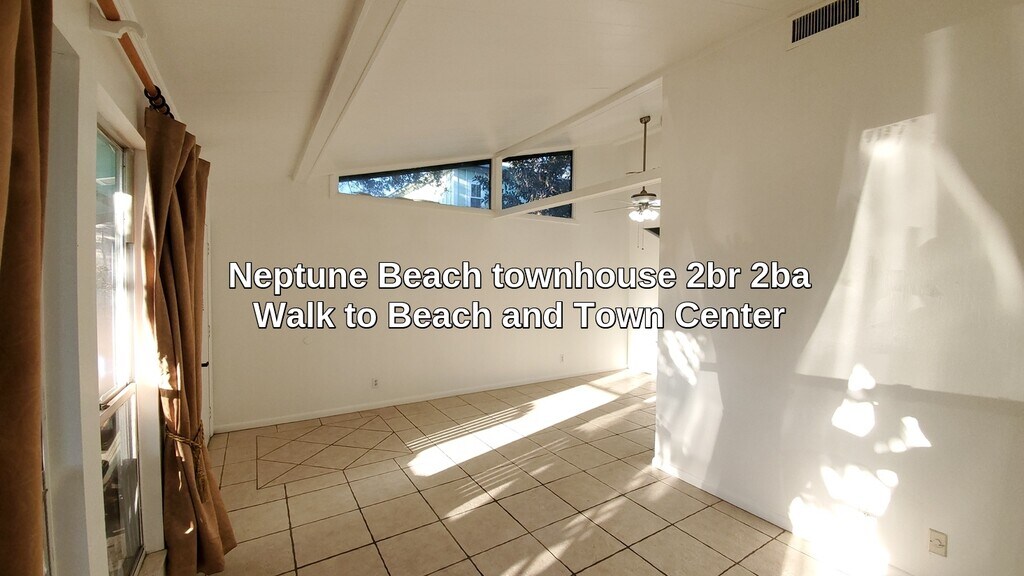 Nice 2-story townhouse. East of A1A. 2br/2ba, 1,150 sq. ft. Available now. Open floor plan, vaulted ceiling, tiled floor throughout, a lot of storage space. First bedroom and first bathroom downstairs. Second bedroom and second bathroom upstairs. Wooden deck, fenced backyard. Washer and dryer. Great area next to Town Center (Atlantic Bv. & Neptune Beach). Walk to beach, shopping, dining and entertainment. Across from Neptune Beach public library. Jarboe Park nearby. Neptune Beach is one of best places to live at the beach. It's very safe, no crime. Deposit: $3,970. Tenants pay utilities.
