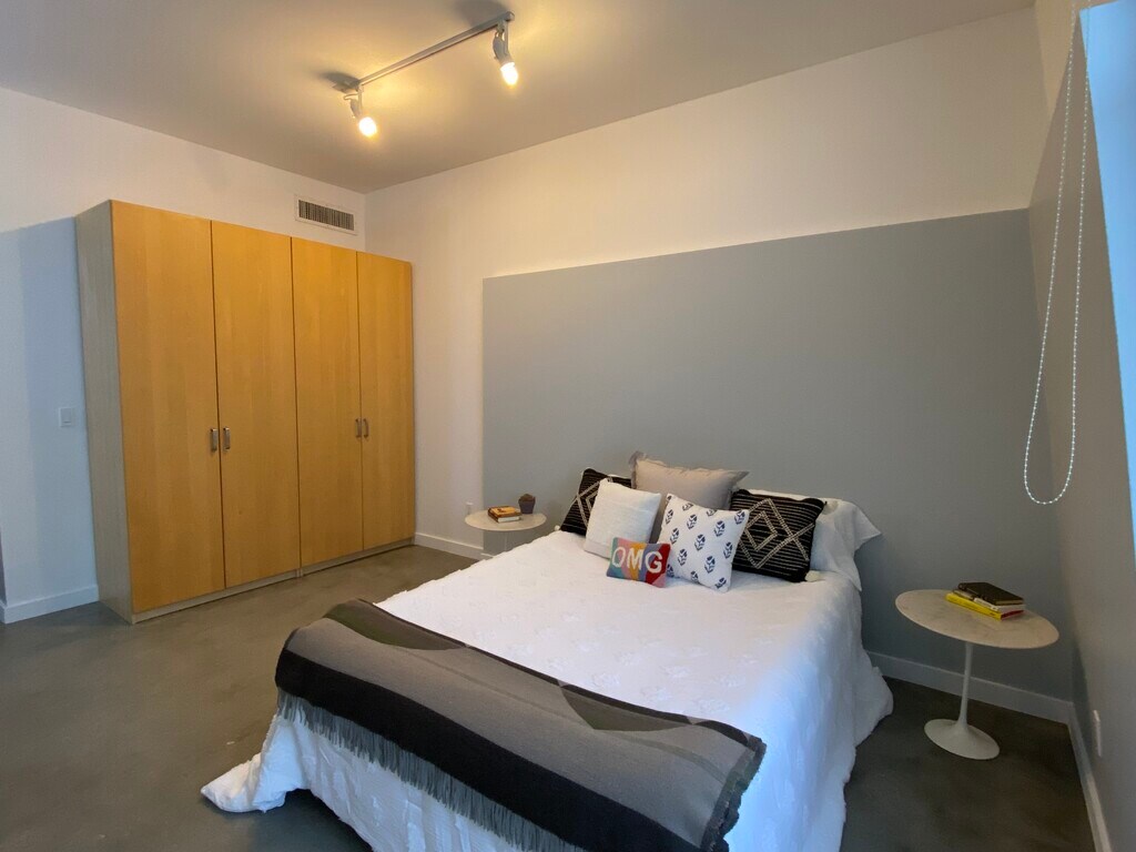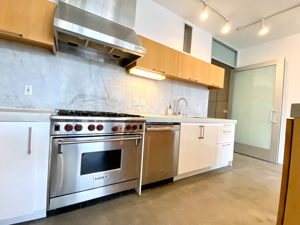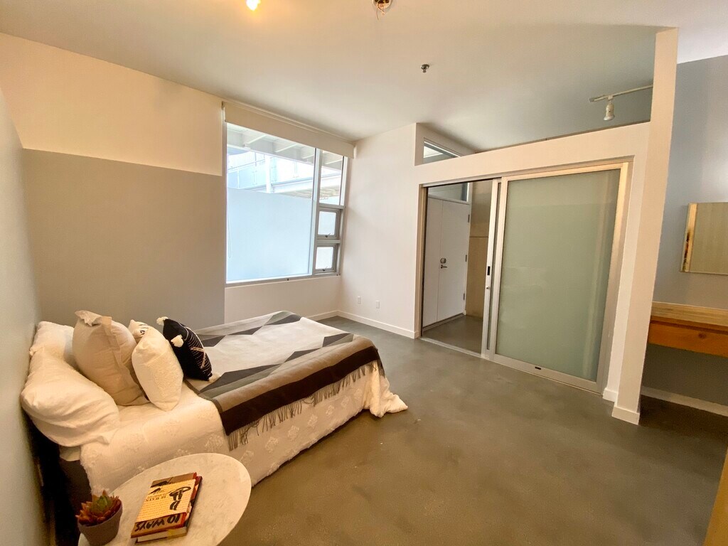 This is it -- a beautiful, light-filled loft in the architectural Venice Art Lofts at 615 Hampton Dr., Venice Beach. Location is ideal-- walk 2 blocks to the sand, or across the street to Gold's Gym or Gjusta Cafe. Located between lively Main St in Santa Monica and Abbott Kinney in Venice. Gated community and two parking spaces side by side in secure garage parking. Storage cabinet/closet area in garage. Private patio with room for al fresco dining, a garden, a fountain, your BBQ, and friends! High ceilings allow large art and an open feel. Upscale appliances -- Wolf Pro 6-burner gas stove; Sub Zero refrigerator. Key amenities include new central air, a dishwasher, and in-unit LG washer/dryer. Italian marble backsplash; new designer imported tile in bathroom. The building includes a large elevator, ensuring ease of access from parking level. Move in Nov 1 or a few days prior. Please email to arrange a showing.