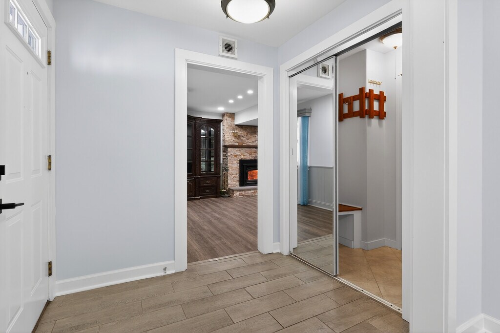 Spacious and thoughtfully updated 5+ bedroom, 3-full-bath home with central air, located in Monroe's highly regarded school district. Offering flexible layout options and generous living space, this home is ideal for larger households, remote professionals, or multigenerational living. The main level features a welcoming entry with oversized walk-in storage, a combined living/dining area for entertaining, and a well-appointed kitchen with dual sinks. A fireplace adds warmth and character, complemented by a cleverly integrated exterior-access wood storage system that allows firewood to be loaded cleanly and conveniently from outside a rare and practical design feature.The main-level primary suite includes a beautifully updated en-suite bathroom with luxe European-style finishes, access to a private deck overlooking the backyard, and an adjoining bonus room ideal as a home office, walk-in closet, or optional sixth bedroom. Two additional bedrooms, a full bath, and a dedicated laundry area complete the main level. Upstairs are two more bedrooms for added flexibility and a huge attic for storage. The partially finished lower level offers a full bath, abundant storage, and a second laundry area. Set on a generous, landscaped lot, the backyard blooms beautifully in spring and summer and is ideal for outdoor dining and recreation. Ample off-street parking. Conveniently located near Wolfe Park and Monroe's recreational amenities. Income-to-rent ratio: 3x Credit score: 700 or above