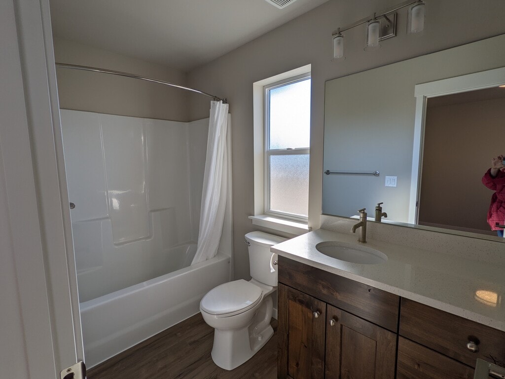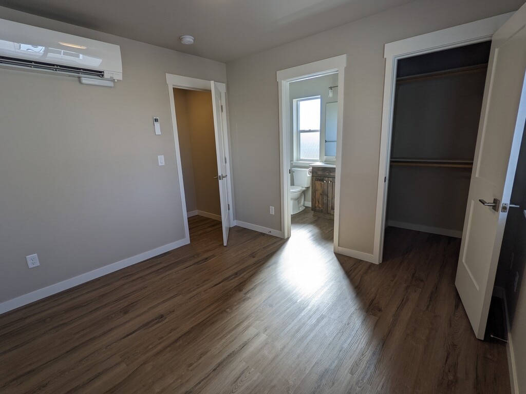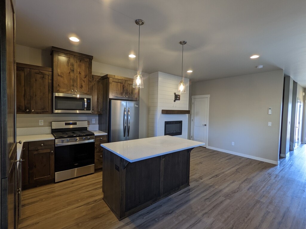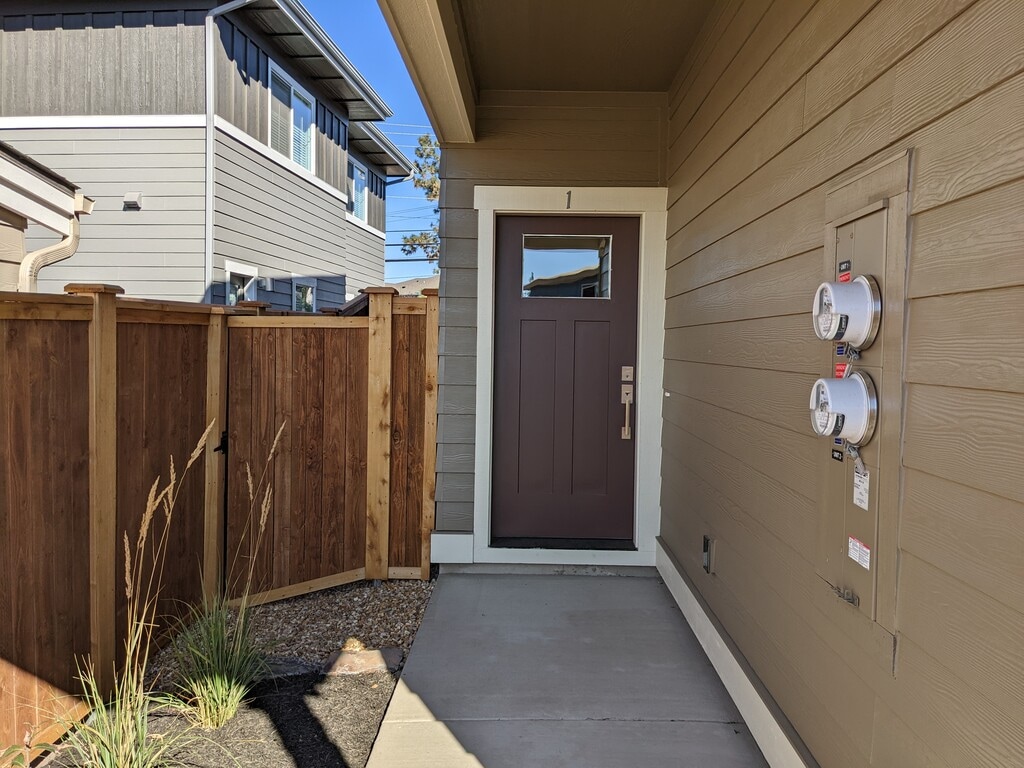 12 month lease, then month-to-month. Includes water and trash. Pets are considered with additional security deposit. Due upon move in: first month’s + last month’s rent + security deposit. 1,100 sq.ft., open concept main floor with a spacious kitchen with knotty alder cabinets and a kitchen island with bar seating, stainless-steel appliances, electrical fireplace with a floating mantle and TV brackets, half-bath and lots of storage. All three rooms, two full baths, and a washer & dryer are upstairs. Heaters and AC units are installed downstairs and in each bedroom. White quartz countertops and engineered vinyl plank floors throughout. A fully fenced hardscape backyard features a natural gas hook-up for a grill. Locking storage space in the backyard and an attached one-car garage and enough space in the driveway for parking a second vehicle. Property management will be provided by the owners. We will conduct a background check for prior criminal convictions and to conduct a security check of your financial standing. Completed applications are processed in the order they are received.