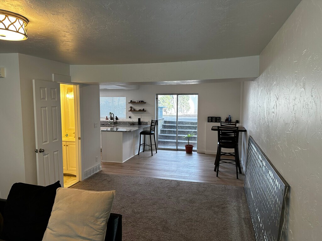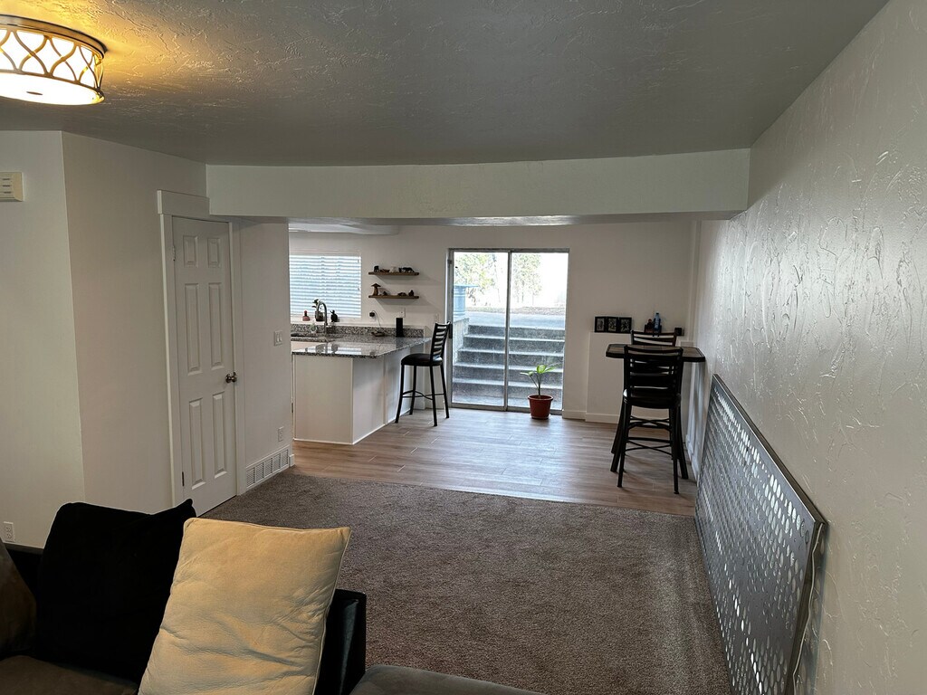 This property has all new flooring, new appliances, new door and window trim, a new AC unit, new paint and new electrical switches. The top floor Primary Suite has been remodeled making it larger and with a brand new shower, with bench, and vanity. All closets have brand new shelving and closet rods. Its location is conveniently close to access to I215 as well as lots of shopping. There is community pool and clubhouse. the neighbors are friendly and it's nice and quiet all around. There is a 1 car garage that is detached from the unit itself, less than a 1 minute walk from the unit. There is a nice large grassy area in the middle of the community. This unit has it's own small fenced in backyard and patio with room for a bbq and patio furniture.