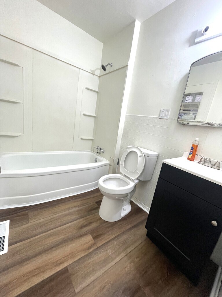 Updated one bedroom apartment on the first floor. Fresh paint. Brand new flooring. Additional updates to the bathroom. Off-street parking. Tenant pays gas & electric and flat $50 monthly water/sewer/garbage fee. Appliances not included. No pets.