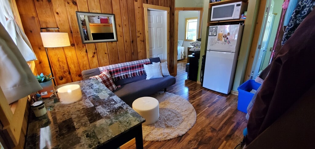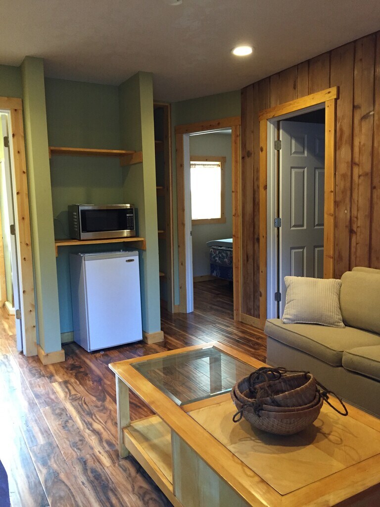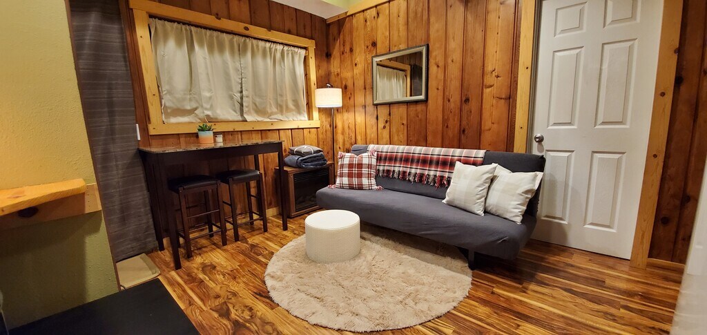 Newley Remodeled 2 bedroom cabin. All utilities included, located on 25 acres with a lake and 4 ponds. Located less than a mile from the Brightwood Beach, Sandy Ridge Mt Bike park, hiking trails, Brightwood Store, Post office and tavern. Near the Mt Hood express bus stops. First, last and security deposit is required all equaling the amount of rent. Do to insurance restrictions dogs we'll be considered, yet the breads must not fall on the Rentprep, insurance and dog breed restrictions. There is no kitchen in this unit, yet micro wave and area to grill out side.