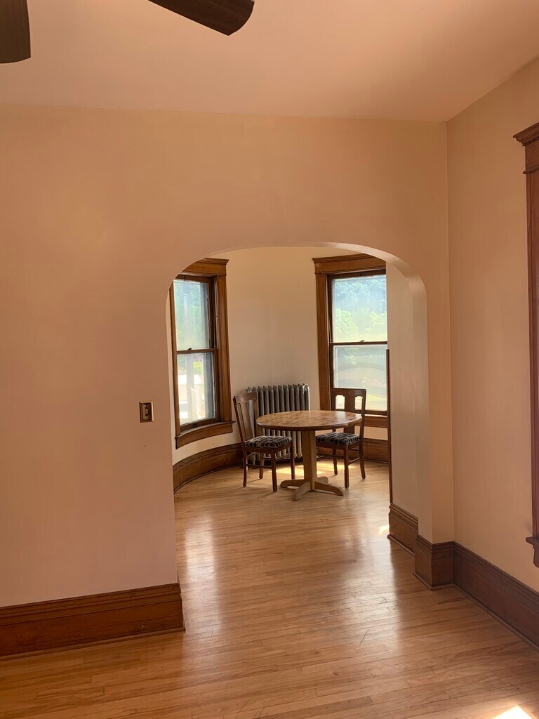 Live in a beautiful historic building in downtown Eau Claire. Available now the Tower Apartment has old world charm with a fully updated living experience. Rent includes heat, tenant pays for electricity, water, garbage and recycling. The Tower Apartment offers privacy, quiet and quality. This executive 1 bedroom is in a Victorian Queen Anne building minutes from restaurants, bars, library, grocery, YMCA, Micon Movie Theater, trails and Chippewa River. Natural light filled, large living space with hardwood floors throughout. There is a • living room • tower room • full kitchen • full bathroom • large bedroom With large east and south facing windows, fantastic Radiant Heat and quality woodworking. Call or text Mike or Vicki at Galaudet Gallery’s phone Express your individuality by quality living in a one of a kind apartment where original luxury is built-in, not imitated. 618 South Farwell Tower East Apartment: The Living Room When you enter the first room is a hardwood floored Living Room with two south facing windows. This room is perfect for tv watching, gaming and other pursuits with room for a large couch and chairs and a great wall for the tv. New ceiling fan in Living Room with great lights. A historic built into wall desk with shelves makes this room ultra functional The Tower Room The star of this apartment is the three windowed, round tower room. Facing east, the Tower Room captures morning living in a great way and allows for some star gazing in the evening. A large round table can stay in the Tower Room if you choose. The Kitchen This full galley kitchen has an electric stove, a full sized refrigerator, great wooden cabinets, drawers, counter space, easy clean tile and a stainless steel, double bowl sink. The east window adds to the nice work space! The Bedroom The Bedroom is large with ample room for any size bed and dressers and desk. A North facing window and an East facing window bring light in from both directions in the morning and works well for sleeping. California closet with shelving and rods for hanging clothes is a plus. There are also hardwood floors and a radiator on the north wall. The Bathroom The Bathroom and hallway have a new floating floor installed that is functional and modern. Ceramic tiled bathroom, large tub with shower and shower doors and a great little shelving unit are here. For an extra charge monthly charge there is a garage space available with remote control access Quiet and security locked building. Rent includes heat. Electricity, water, garbage and recycling paid by tenant. Taking applications for a 12-month lease. No Pets No smoking building Location downtown Eau Claire Contact: or call Mike or Vicki at Galaudet Gallery