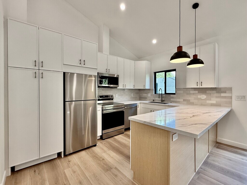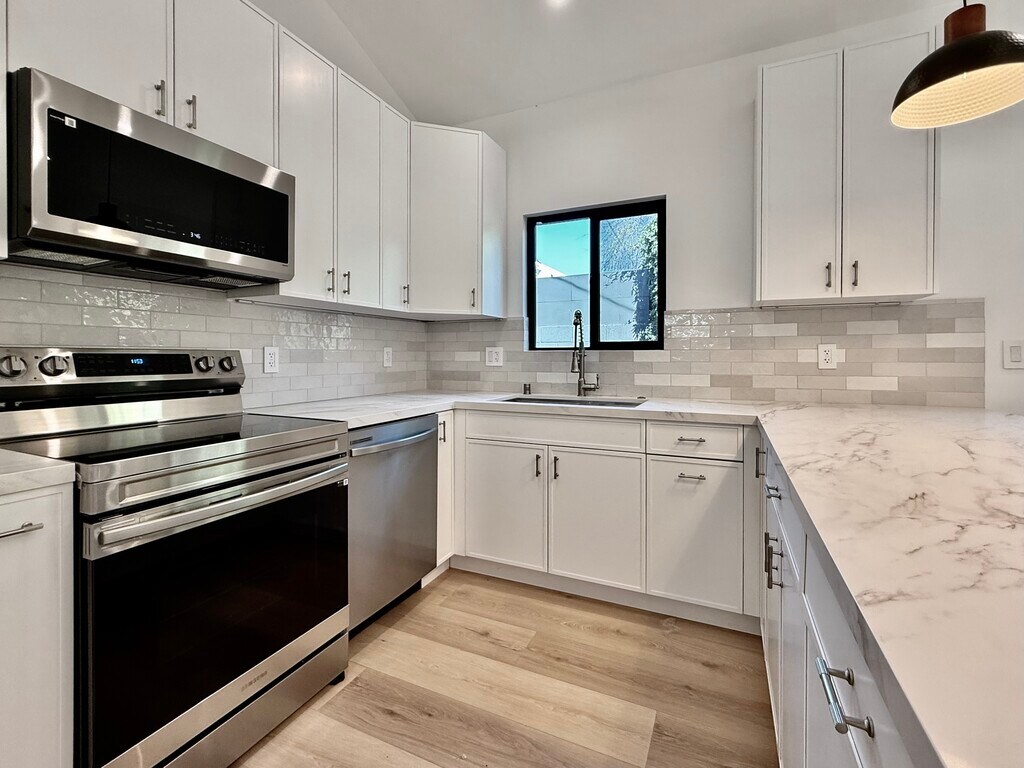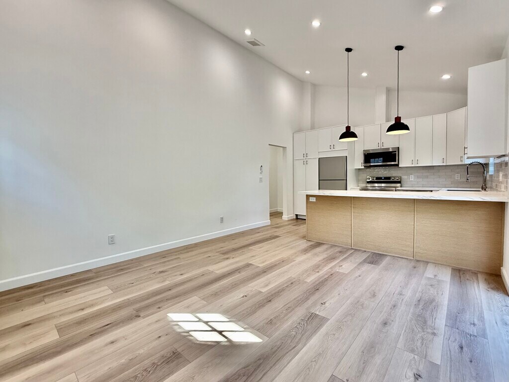 Welcome to this newly built, modern 1-bedroom, 1-bathroom ADU that feels like your own private retreat. Designed with contemporary style and comfort in mind, this bright and airy home offers an exceptional living experience in one of LA's most sought-after neighborhoods. Step inside to soaring extra-high ceilings and windows that flood the space with natural light, creating an open and inviting atmosphere throughout. The thoughtfully designed floor plan maximizes both space and functionality. The sleek kitchen features brand new stainless steel appliances, stunning quartz countertops and modern cabinetry perfect for both everyday living and entertaining. The spacious bedroom offers a peaceful retreat, while the beautifully finished bathroom showcases clean lines and premium fixtures. Enjoy your own private backyard deck, with separate outdoor spaces for each unit, perfect for outdoor dining, relaxing or entertaining. Additional highlights include an in-unit washer and dryer for ultimate convenience and easy permit street parking. Ideally situated near shopping, dining and entertainment, this turnkey home combines modern luxury with a prime central location.