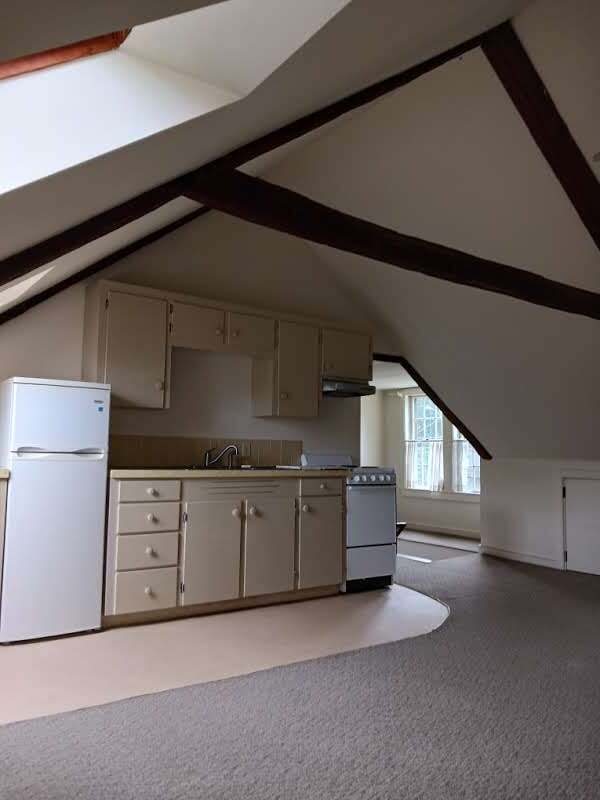 Available Now! Single occupancy, 1 Bedroom/studio type apartment on the top floor of an 18thc farmhouse. Private front entry large enough for a bike, galley kitchen/ living room with bedroom and bathroom. Generous storage areas and large closet space. Tree views on a quiet street perfectly located near UNH, downtown Dover, and Portsmouth/Pease. Owners lives below. Heated by electric baseboard. Tenant must be able to shovel snow path to plowed driveway.