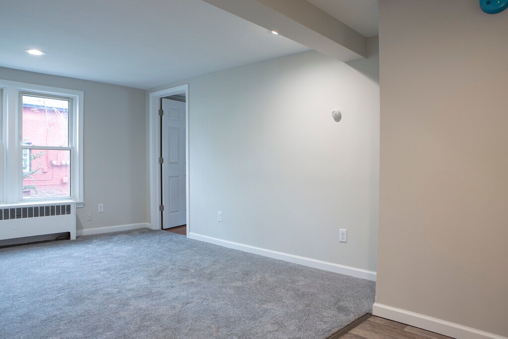 Renovated first floor apartment, bright, clean. 2 bed 1 bath, washer/dryer in unit. Off street parking. Private well-maintained yard. One Medium size dog or cat allowed. Pet rent applies.