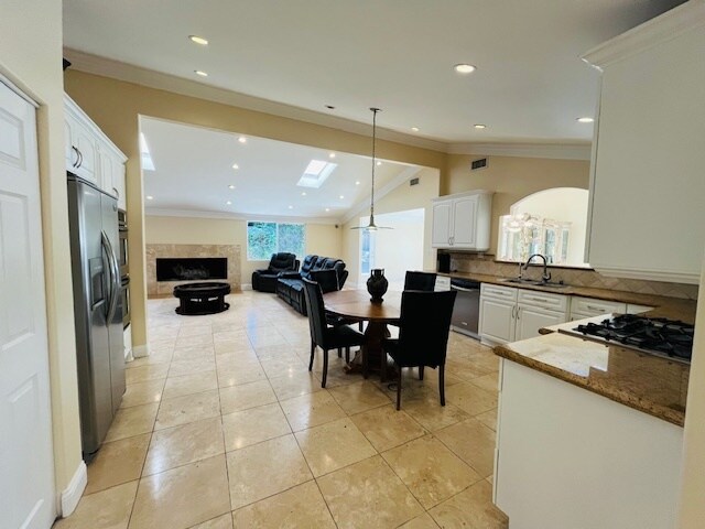 Stunning Tarzana Single-Story Ranch Home for Lease 5 Bed | 3.5 Bath | Spacious Backyard Oasis Welcome to this beautifully updated single-family ranch-style home tucked away in one of Tarzana's most desirable pockets near Candy Cane Lane. Surrounded by newer homes, this expansive single-level residence offers the perfect blend of privacy, space, and comfort ideal for both relaxing and entertaining. Step inside to a bright, airy interior featuring natural travertine and wood flooring throughout, recessed lighting, skylights, and charming exposed beam ceilings. This home boasts five generously sized bedrooms and 3.5 bathrooms, offering plenty of room for family and guests. The large chef's kitchen seamlessly opens to the family room and dining area, creating an inviting open-concept layout. Multiple sets of French doors extend your living space outdoors, perfect for California indoor-outdoor living. Enjoy the expansive backyard with a serene patio, lush mature landscaping, and privacy hedges. A gated rear alley access allows parking for six or more vehicles ideal for gatherings, extra vehicles, or recreational use. Recent updates include: * Fresh interior paint * Upgraded 200-amp electrical panel-Available for Electrical Car. * Dual central air and heating systems for year-round comfort This prime Tarzana location offers easy access to Ventura Boulevard's shopping, dining, parks, and top-rated schools in the area. Don't miss your chance to lease this rare gem a true entertainer's paradise and private retreat!