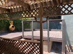 Very spiritual, peaceful and private. Was originally a chapel for Krotona society. Lots of history. There are many stairs going down, so good exercise. Very private with view, lawn, gazebo and deck with gas connection for barbecue. Lower back bottom level of 3 story house. Owner lives in top 2 storys. One parking spot in covered car port. In the hills above Franklin Ave, above Beachwood. Good neighbors, lovely area.