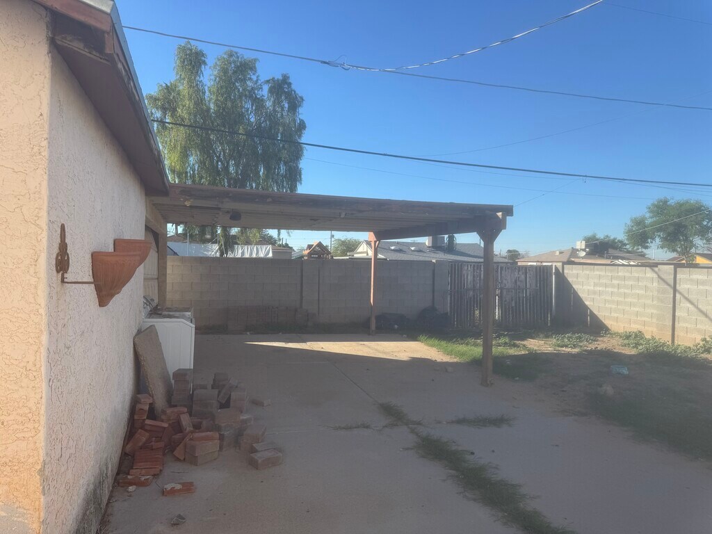 This is definitely a sweat equity type of rental with tons of potential. I’d be interested in a rental with option to buy agreement as well.Full paint and remodel a few years back. New AC put in the back part of home put in about 1.5 years ago, along with a large amount of pavers installed for low maintenance. Walking distance to the new rail system on Central Ave. There is a shop/casita in the back yard. Block wall all around for privacy too.