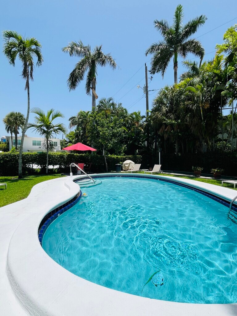 Newly renovated with a brand new bathroom, 1 bedroom / 1 bath apartment on the second floor. Willing to rent furnished or unfurnished, 3 blocks to the beach and less than a mile to Las Olas. Walking distance from a ton of bars and restaurants. Amazing natural light, quiet and private upstairs corner unit. Pool and common areas, including laundry room with washer and dryer. Includes one designated parking spot, trash and water. No smoking and no pets. Available June 1st, minimum six month lease. Ideally would love a long term tenant. Contact me with any questions!