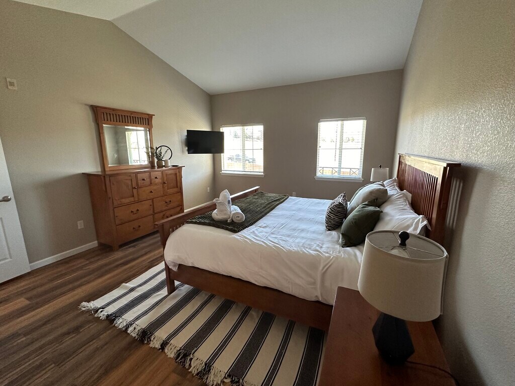 This stunning 2-bedroom, 2-bathroom condo is perched on the second floor, offering a serene and elevated retreat with breathtaking panoramic views of the majestic mountains right from your living space. The open-concept main living area features soaring vaulted ceilings that create an airy, spacious feel, accentuated by large windows and glass doors that flood the home with natural light and frame those incredible mountain vistas year-round. Whether you're sipping coffee as the sun rises over the peaks or unwinding in the evening with golden alpenglow, the scenery becomes part of your everyday luxury. Fully furnished with tasteful, high-quality pieces, the condo is move-in ready and designed for effortless comfort. The cozy yet elegant living room invites relaxation, while the well-appointed kitchen and dining area make entertaining or quiet meals a delight. Both bedrooms provide peaceful sanctuaries, each with its own private bathroom for added convenience and privacy. All utilities are included, so you can simply settle in and enjoy—no extra bills to worry about. Perfect for a vacation getaway, seasonal escape, or low-maintenance lifestyle, this beautiful mountain-view condo combines modern comfort with the timeless allure of nature.