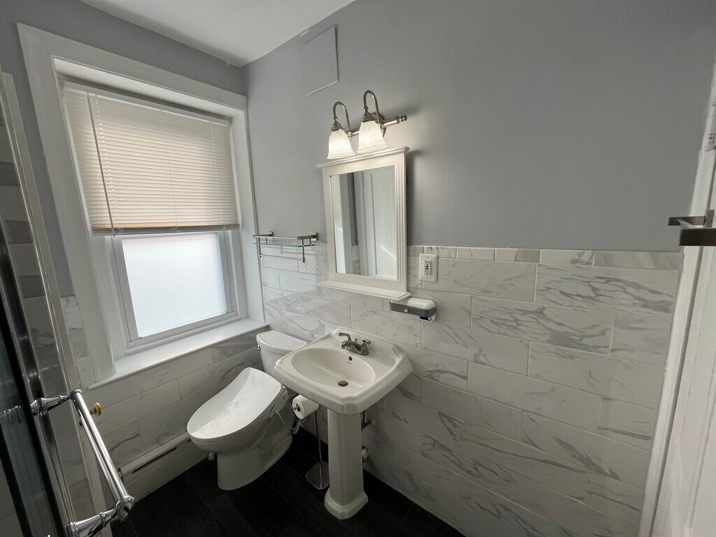 This beautiful 2 bedroom apartment (it’s actually a 3 bedroom unit, we call the 3rd an office), has heigh ceilings, a large living room and marble bathroom, that spans the entire 2nd floor of this corner-property home. This apartment features vinyl plank floors and an updated kitchen, which features a wine refrigerator, gas range, microwave and refrigerator. It has a large front porch and yard, and is located in a nice quiet neighborhood. Enjoy all that Lansdale and Montgomeryville have to offer, including the train station, farmer's market, parks, summer concerts, shops, mall, and restaurants. Off-street parking spot, with abundant on street parking. Common laundry machines and storage lockers in the basement. 1 cat is allowed. Smoking and dogs not allowed. Please contact me to set up an appointment