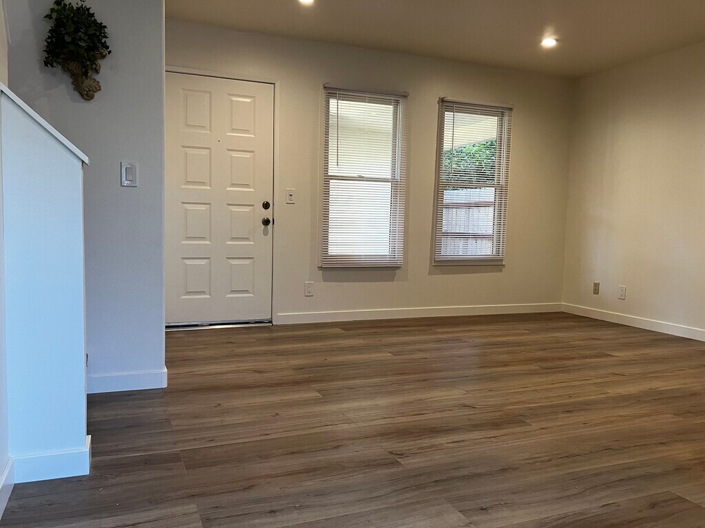 Highly upgraded, end-unit Townhome with attached two car garage, New Kitchen, central AC. Fully remodeled recently. Bright and modern with new laminated wood floors and recessed lightings. Freshly painted, floor to ceiling throughout and new carpet on stairs. Two bright, large primary suites with cathedral ceilings and ample closet space - each with full ensuite bathrooms with frameless clear shower and bathtub doors. Upstairs laundry area and linen closet. Downstairs restroom for guests. Dine-in area with upgraded new ceiling fan opens through sliding glass doors to a private, fenced backyard. Newly remodeled kitchen with NEW appliances, sparkling white countertops, under-counter-top-sink, tall-faucet, dishwasher, garbage disposal, built-in microwave oven, range with oven, and side-by-side refrigerator with cold water & ice at front panel. 3 New Toilets, 3 new vanity sinks and cabinets. Newer central heat and air conditioning. All new blinds. Attached direct access two-car garage with built-in shelving. Conveniently located to UCI Medical Center, CHOC and Chapman College, restaurants, park, freeways, shopping centers and Old Town of Orange. South of La Veta Ave and North of Hart Park on 629 South Glassell St. Unit C in 92866. Townhouse style Apartment, Condo as if House.
