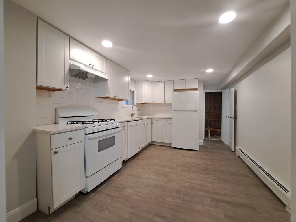 ALL UTILITIES INCLUDED! Gut-renovated 1 bedroom apartment, flooded with natural light, and grey wood floors throughout. Plenty of space and usability with a large entry way, and an open living/dining area. Separate eat in windowed kitchen, Plenty of cabinets, and lots of counter space with brand new appliances including a dishwasher and granite countertops. Spacious king size bedroom with closet, and a spacious tiled bath with a private backyard that comes with a garage for shared use and best of all, there is a washer and dryer. Contact James to coordinate a viewing or if you have any questions.