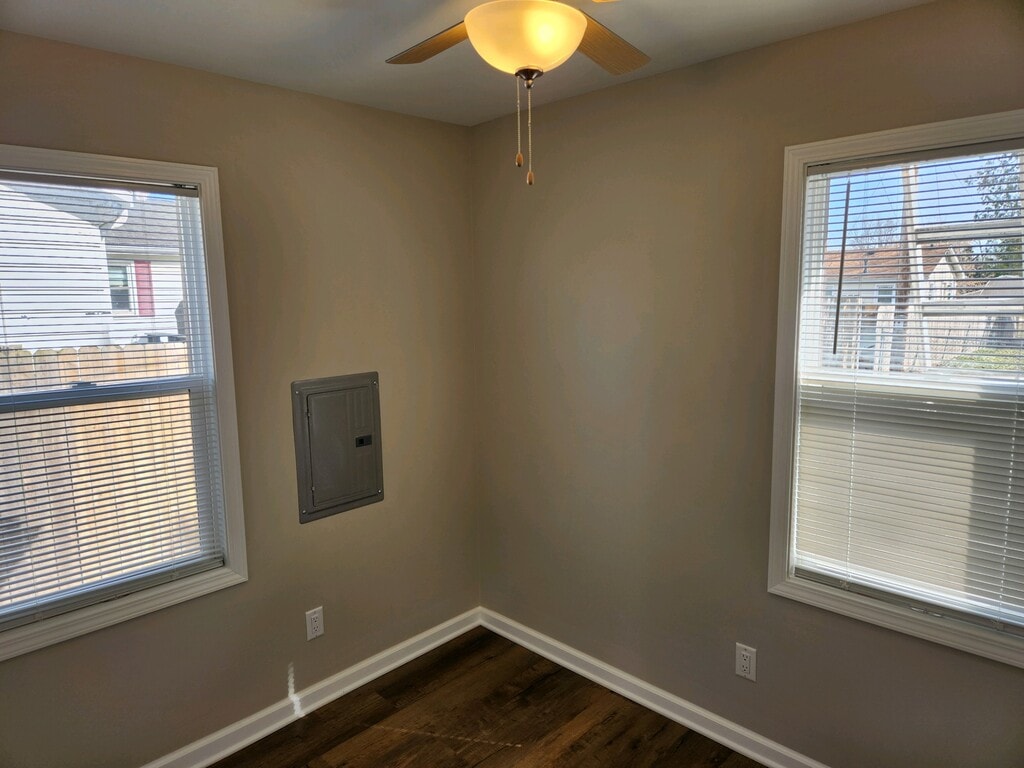 2-3 Bed/1 Bath home available 4/1/26. Completely redone and move-in ready. New flooring, paint, electrical, plumbing, furnace, A/C, SS appliances (including dishwasher), washer and dryer. Sustainable flooring throughout. Partially fenced yard. Third bedroom would make a great office space. Water and trash included, tenant pays electric and gas. Storage shed will be added in the next couple of months. Must have 620 or higher credit score, 2 year job history and minimum monthly income of 3 times rent. Credit background check. First month plus security deposit. Cats/dogs okay with $250 non-refundable pet fee and $100/month per pet (weight/size restrictions apply).