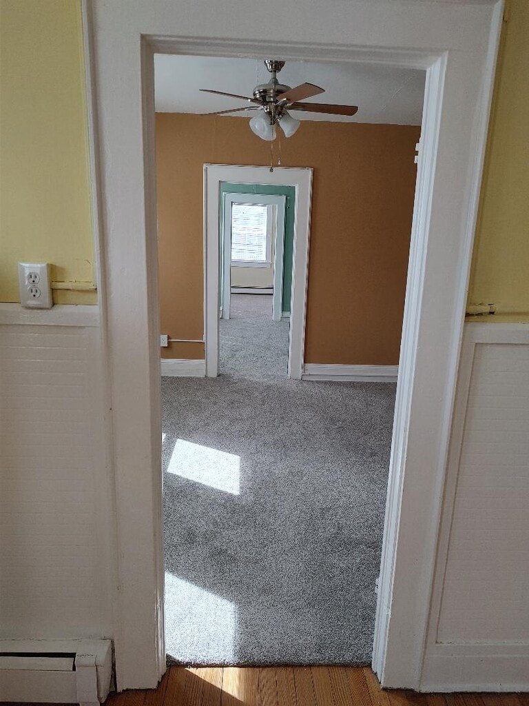 This A beautiful two bedroom apartment located in Dickson City perfect for one or two people. It is a second floor apartment situated within a four unit building in a quiet neighborhood surrounded by restaurants, stores. malls, schools, parks, gyms, plus it is close to the fire and police departments. This apartment was recently renovated and updated to include : three rooms of new carpeting, one room with original hardwood floor, kitchen island, over the range microwave, new doors, windows, screens, all rooms freshly painted, three walk-in closets, front and rear porches, ceiling fan/lights, electric range, refrigerator, clothes washer/dryer hook-ups, off street parking plus more. The qualifying applicant pays for paying the electric and gas and I pay the water, sewer and garbage. The heating system is natural gas hot water baseboard and each unit has its own furnace and water heater. There is a one year lease after which it transitions into a monthly tenancy bound by the lease agreement, the rent is $1050. per month, one month security plus the first and last months rent are due upon signing the lease. Applicants will need a clear and clean background check, secure and sufficient income plus references. Pets of any kind are not allowed in this apartment. Apartment tours will be scheduled for interested and qualifying applicants. Best of Luck.